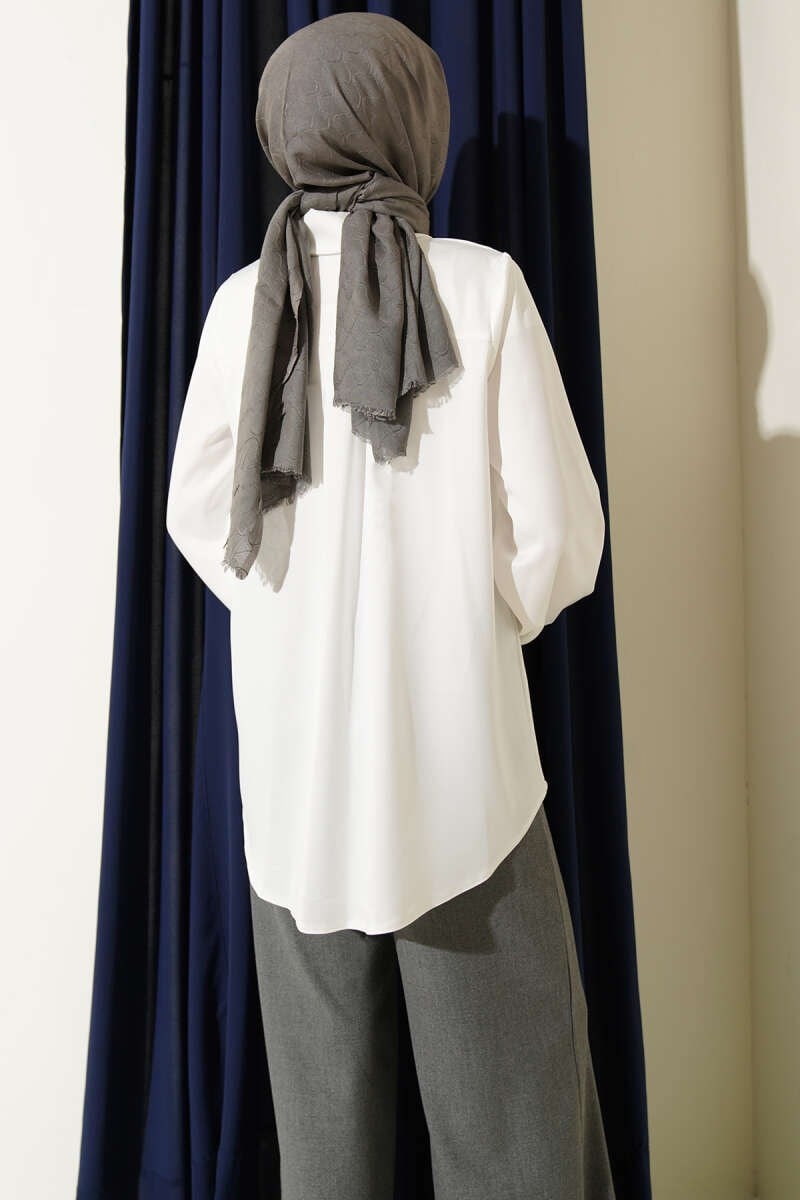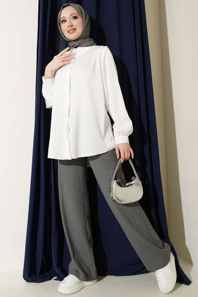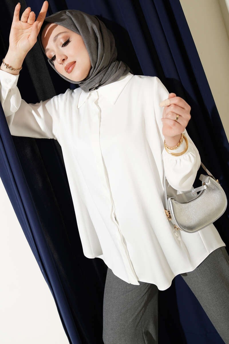 Gizli Düğmeli Basic Saten Gömlek Ekru (0999-5186-734352)