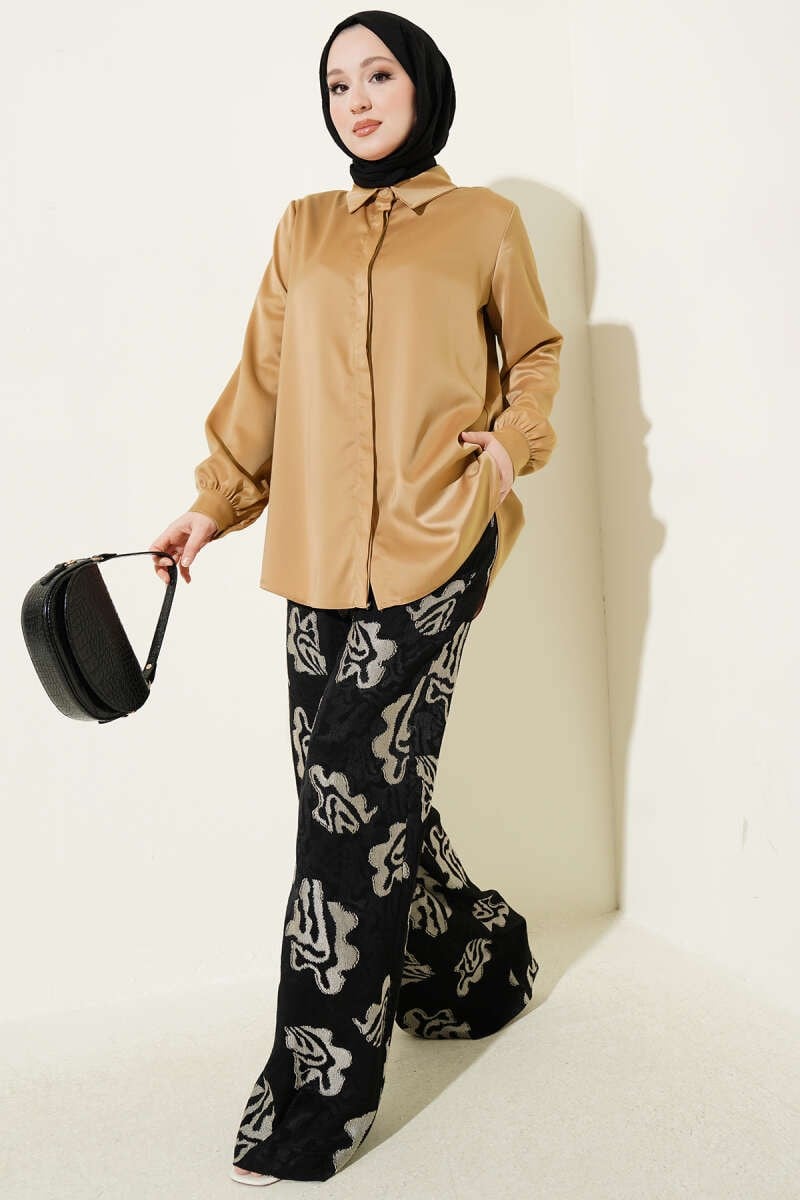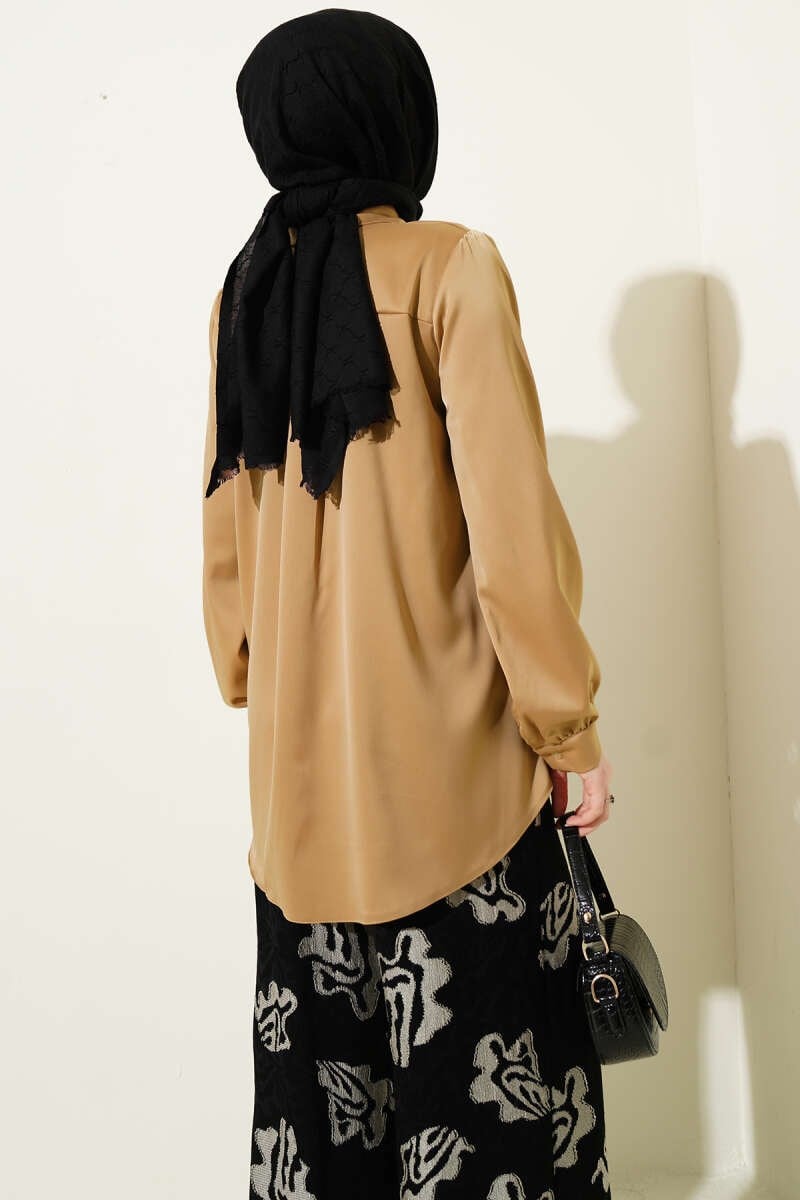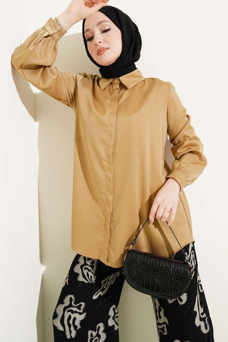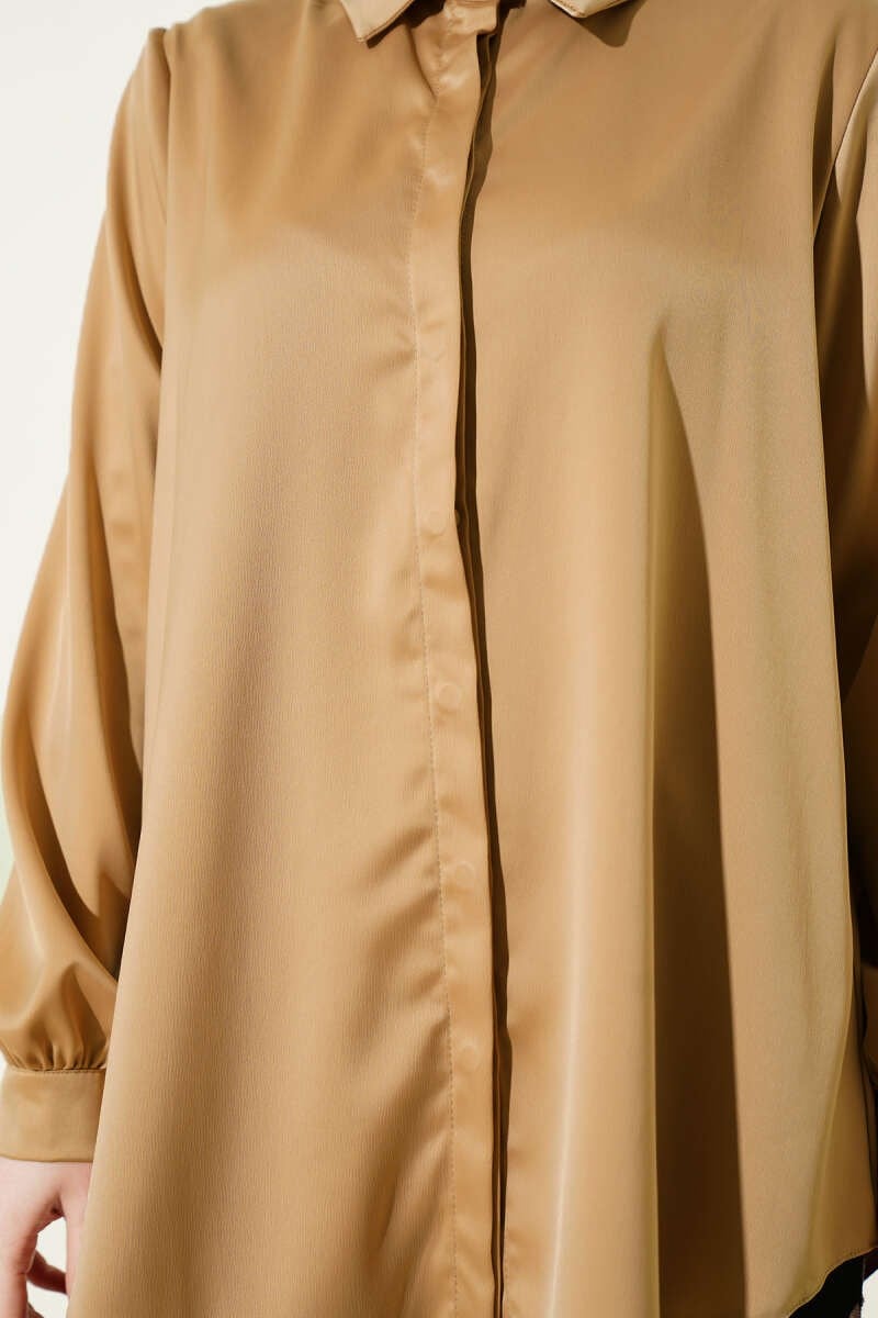 Gizli Düğmeli Basic Saten Gömlek Latte (0999-5186-734401)