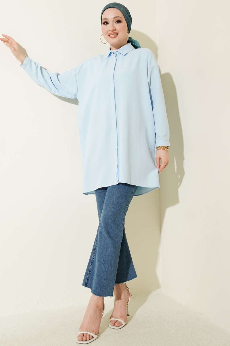 Gizli Düğmeli Modal Gömlek Mavi (0428-4537-738315)