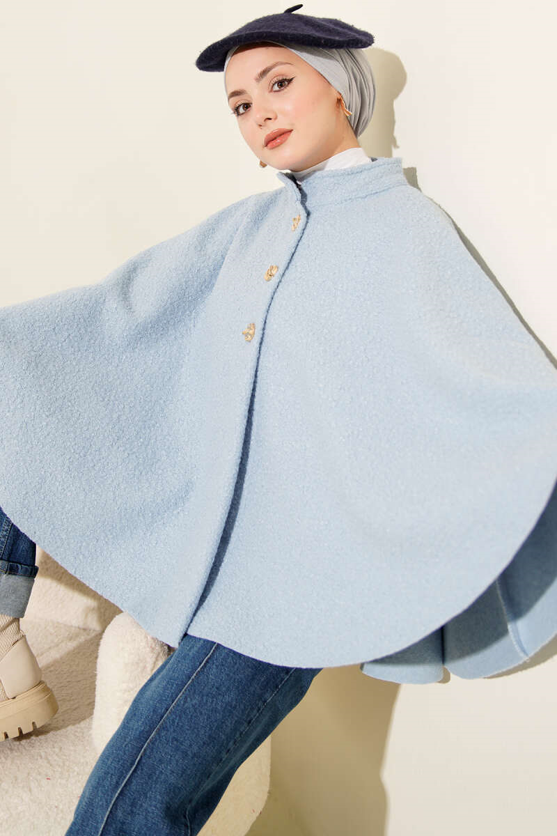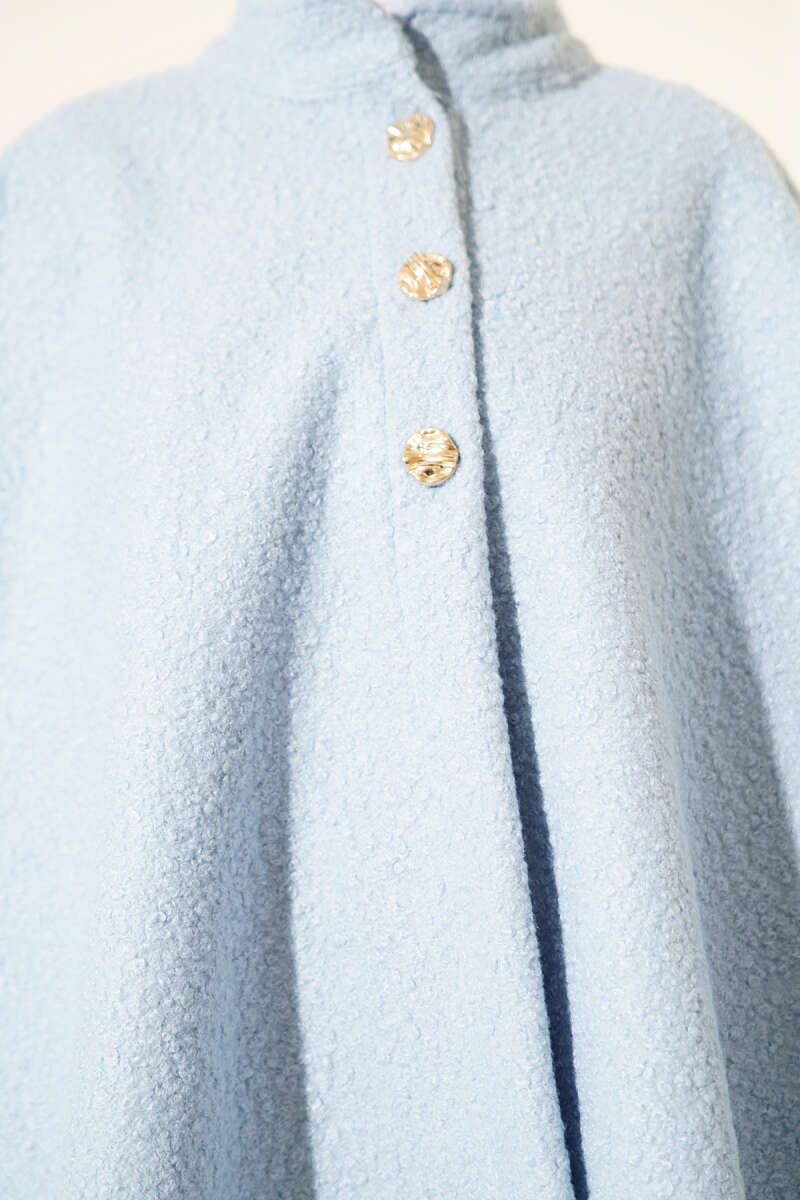 Gold Düğmeli Buklet Panço Bebe Mavi (0569-3233-694606)