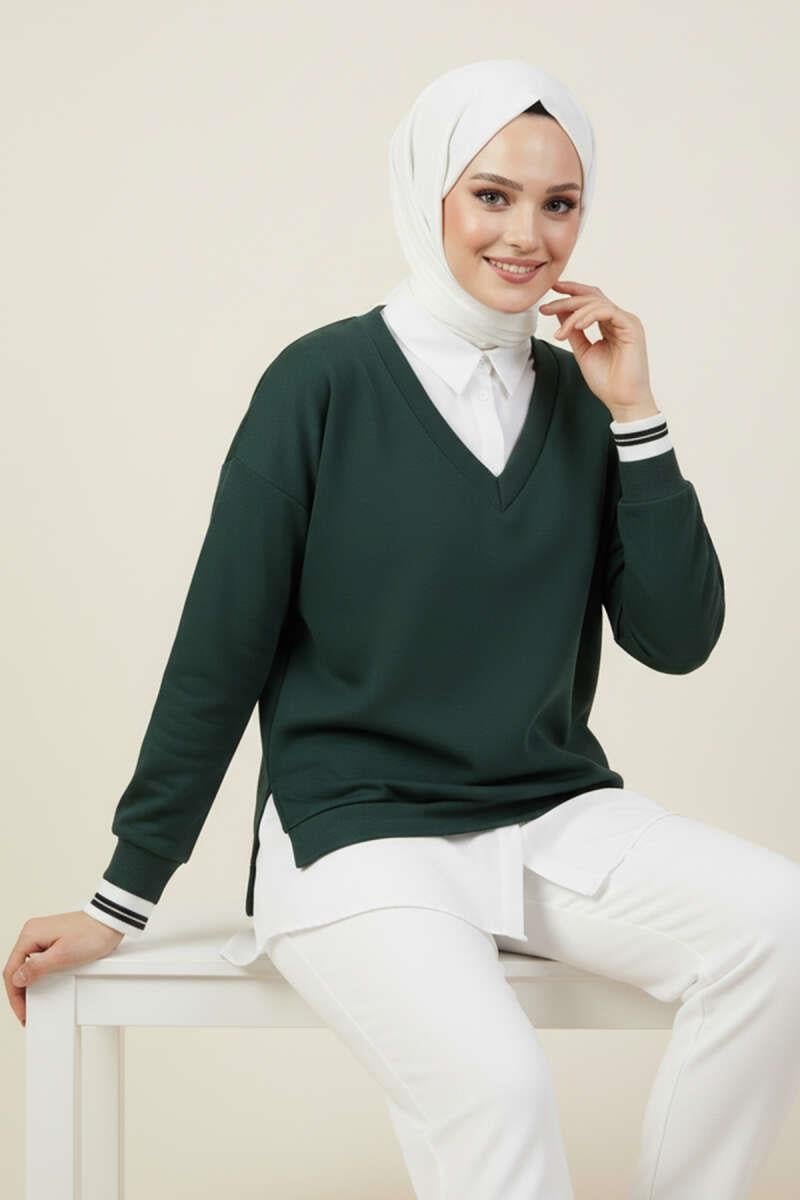 Gömlek Yakalı Granili Tunik Zümrüt (0643-18687-675769)