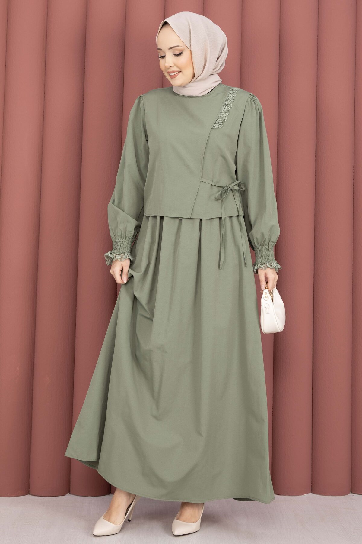 Güpür Şeritli Elbiseli İkili Takım Mint (125M00611324R4038)