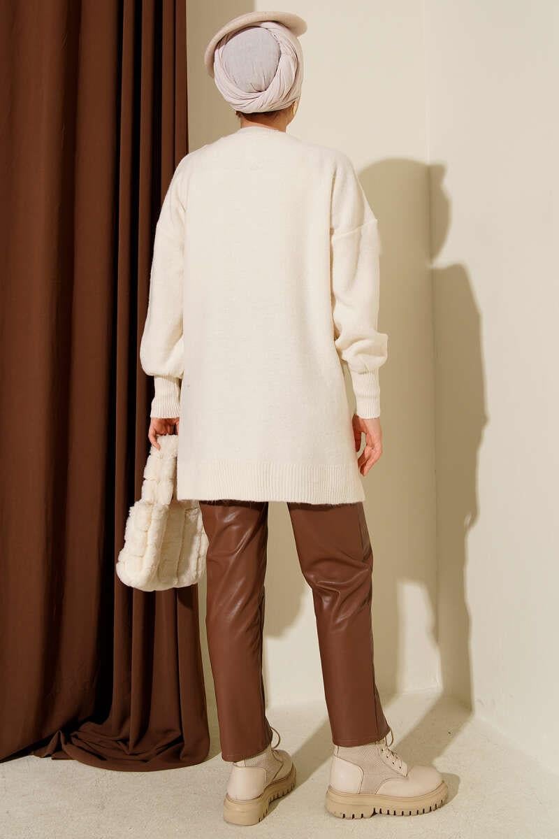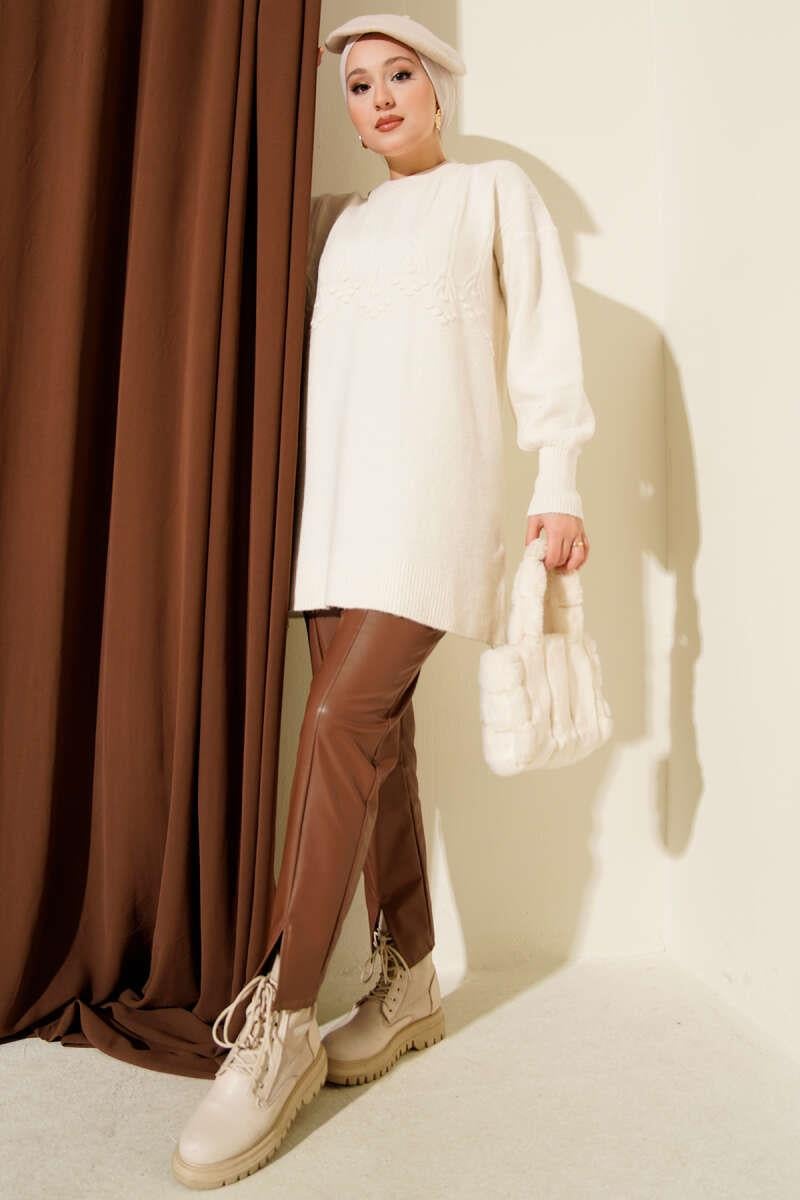 Kabartma Desen Yumoş Triko Tunik Kemik (0589-6002-681331)