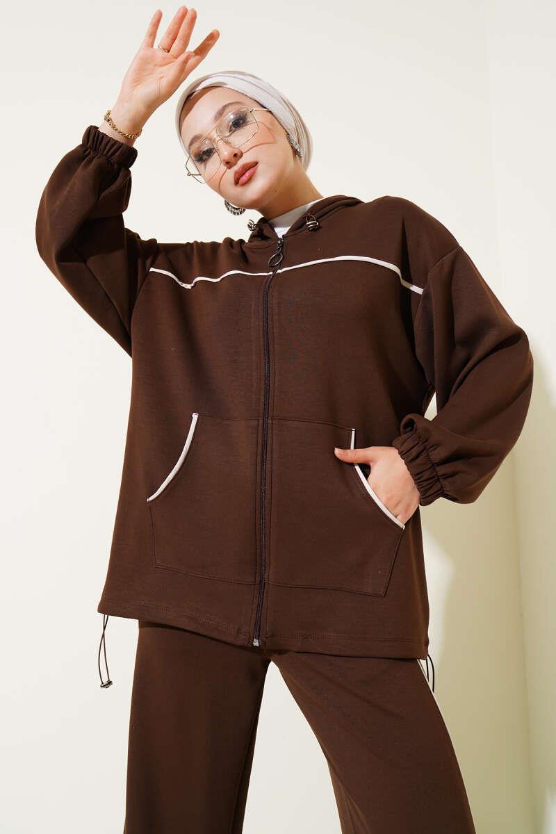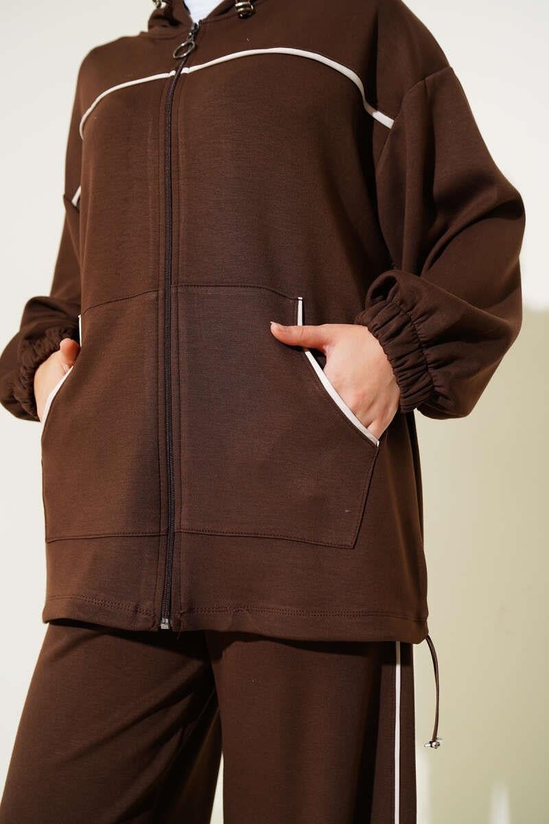 Kapüşonlu Biyeli Loyşa İkili Takım Kahve (8900-25107-669117)
