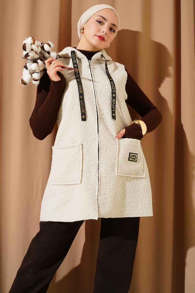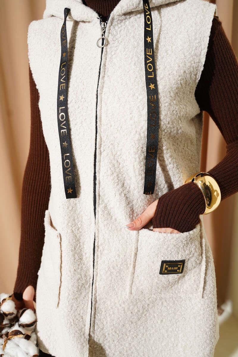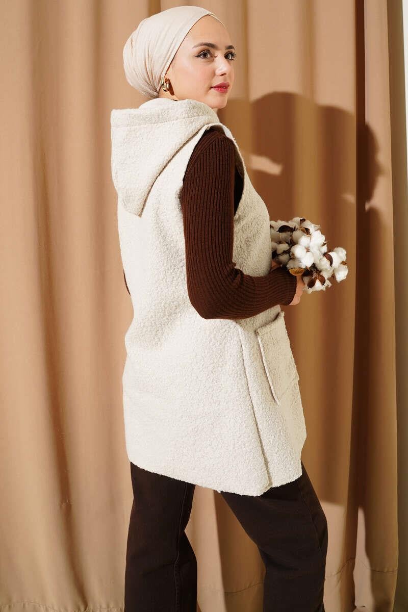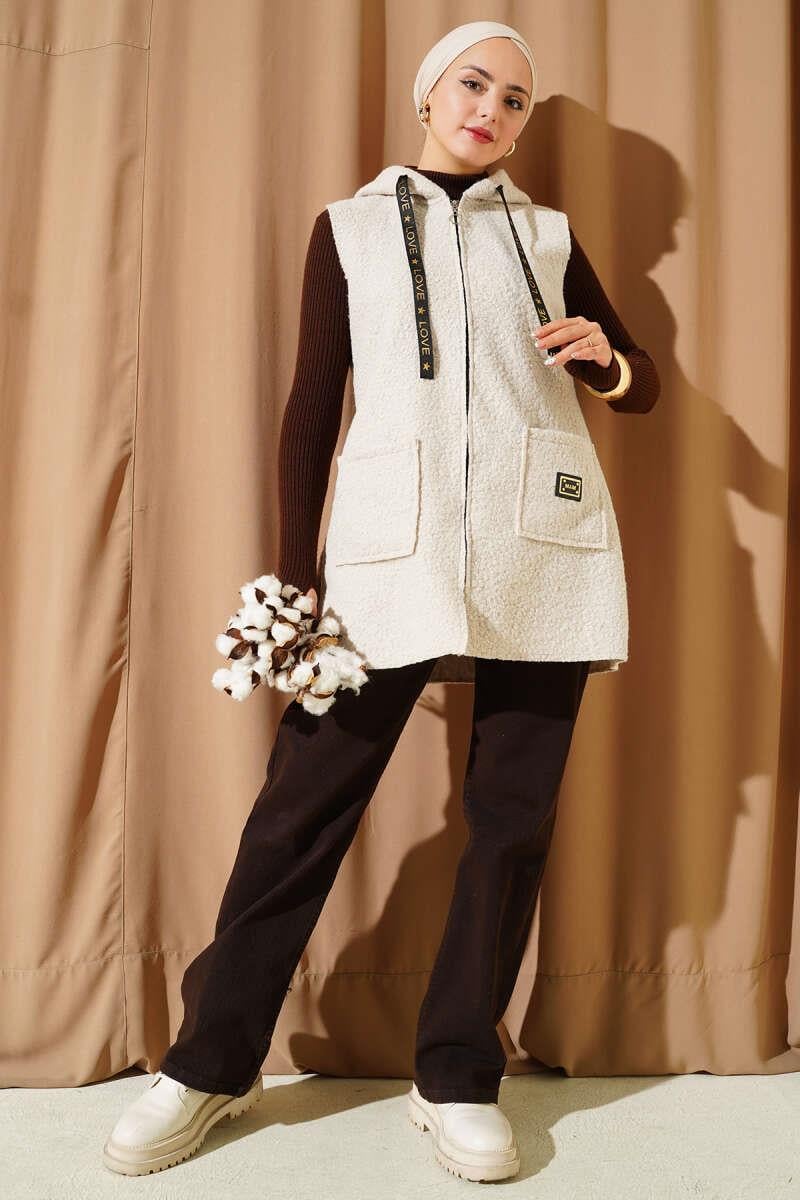 Kapüşonlu Buklet Yelek Bej (0569-3228-684165)