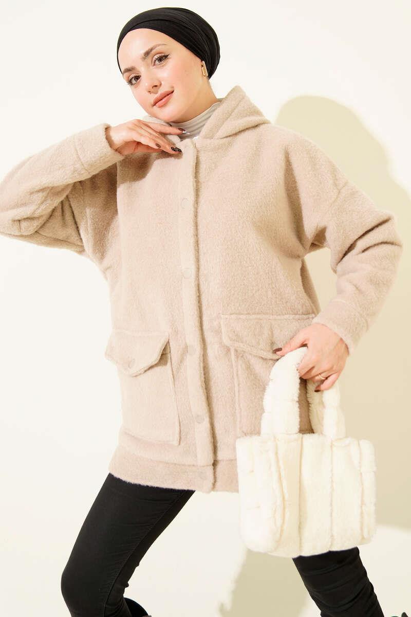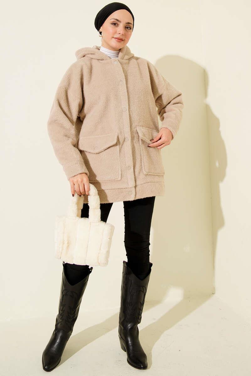 Kapüşonlu Çıtçıtlı Kaban Bej (0823-1217-686230)