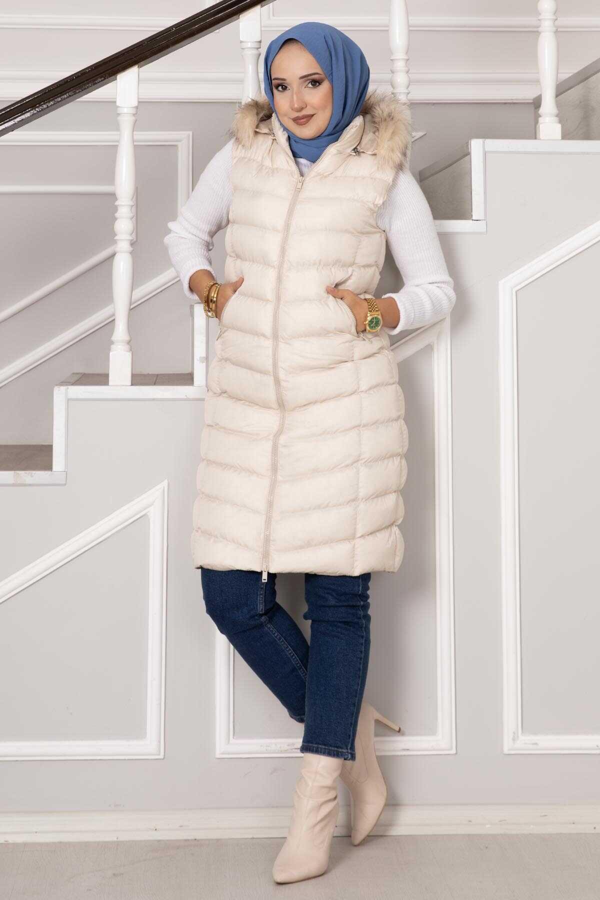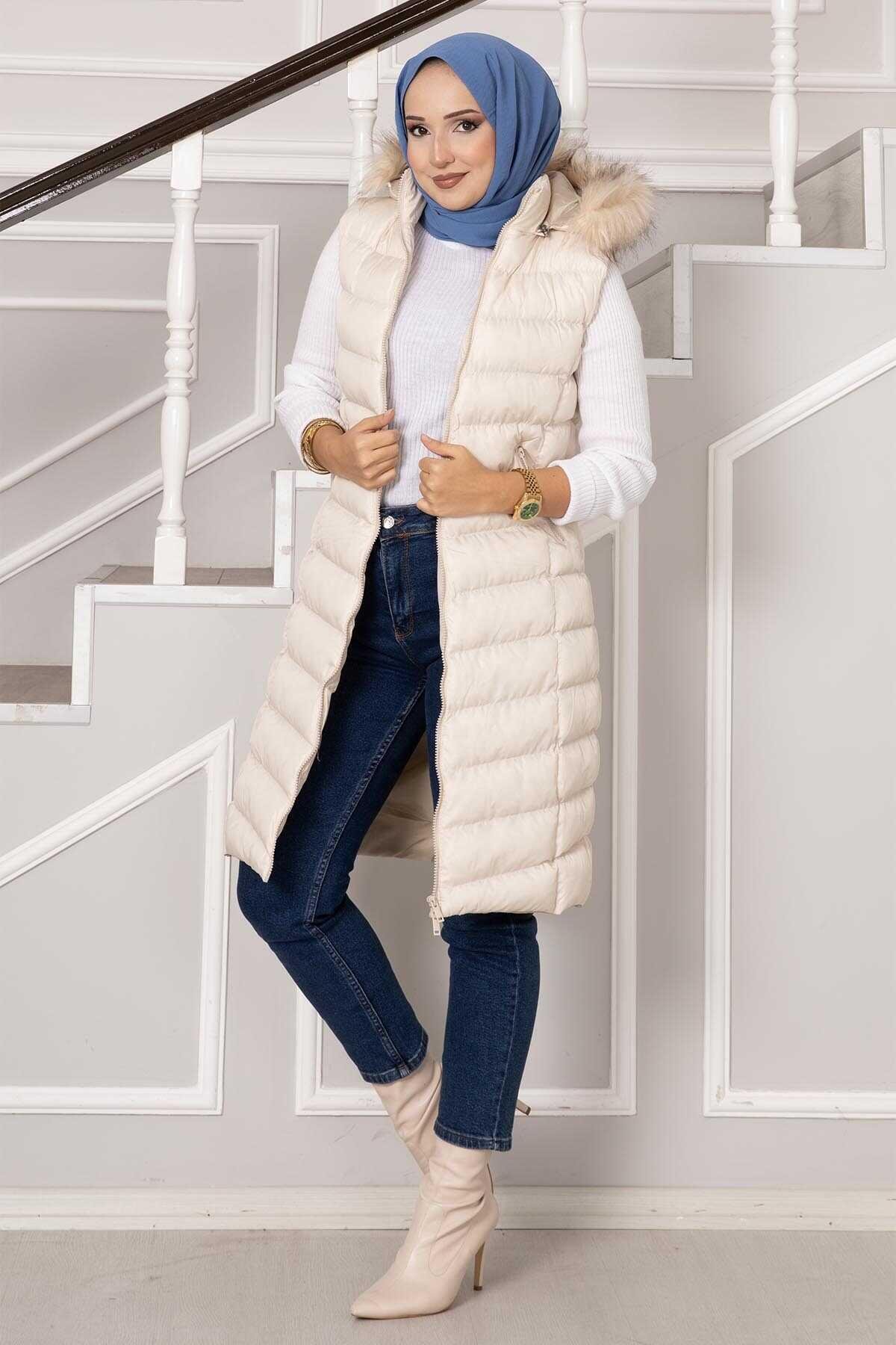 Kapşonlu Şişme Yelek Ekru (120M00428156R1438)