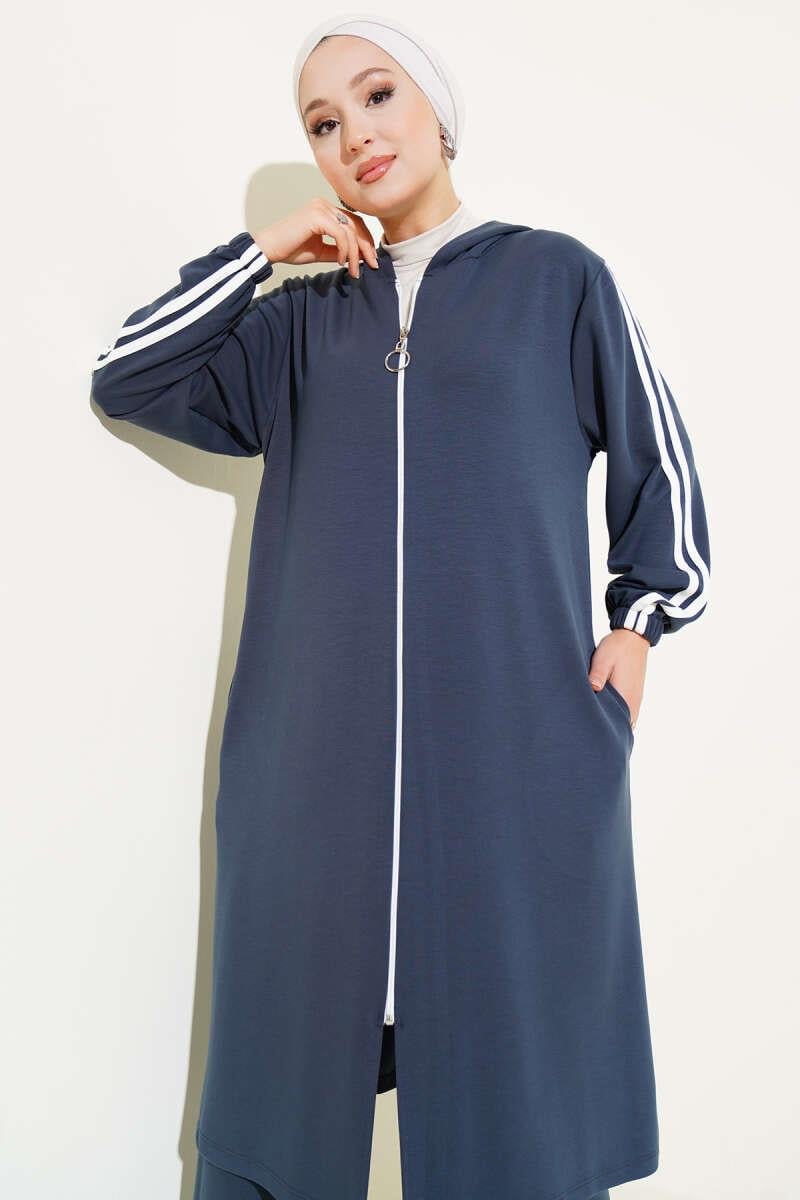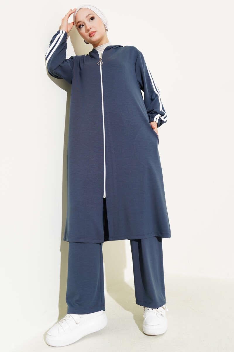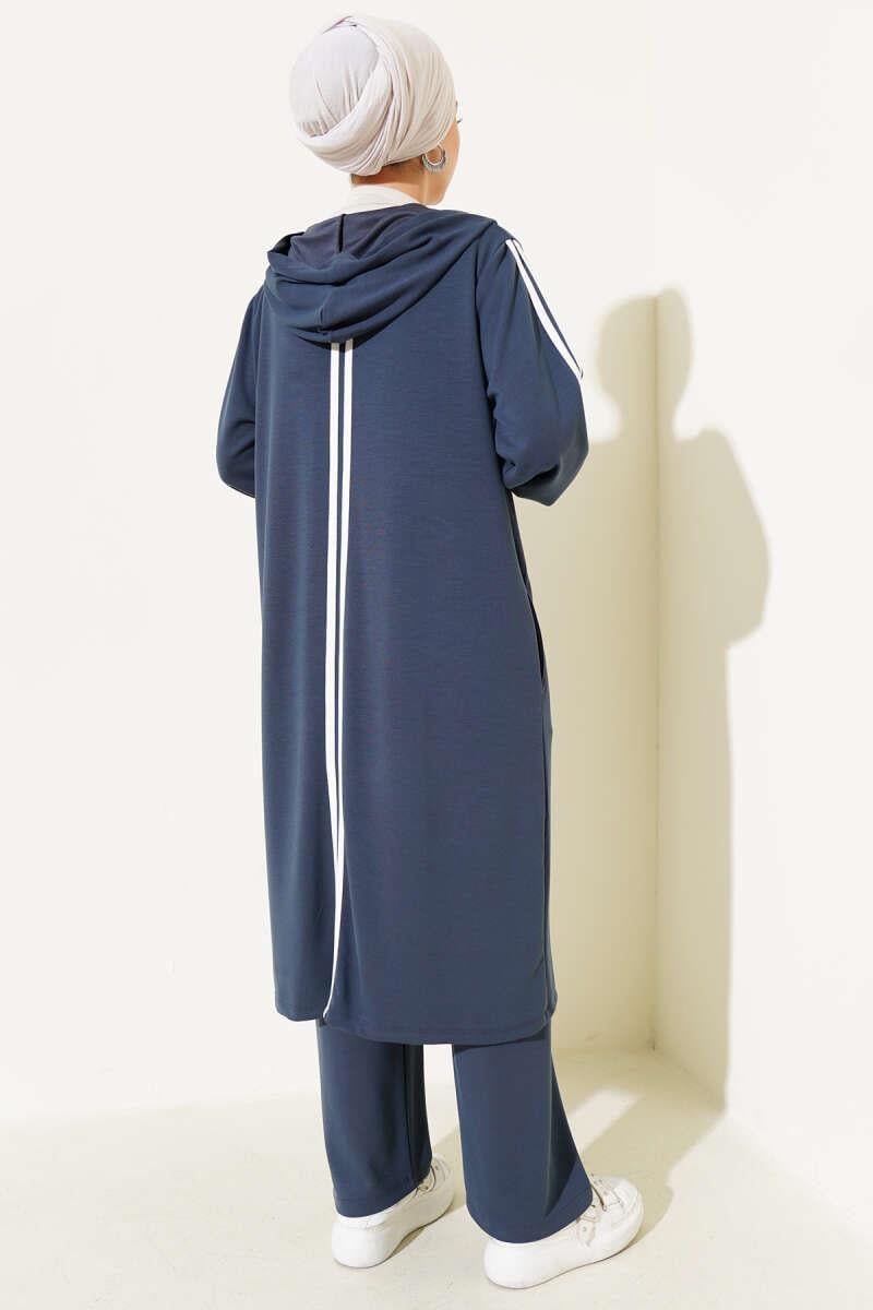 Kapüşonlu Uzun Tunik İkili Takım Füme (0829-5380-670188)