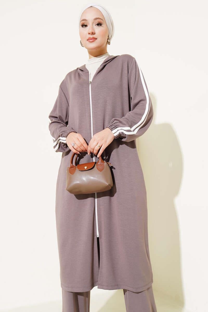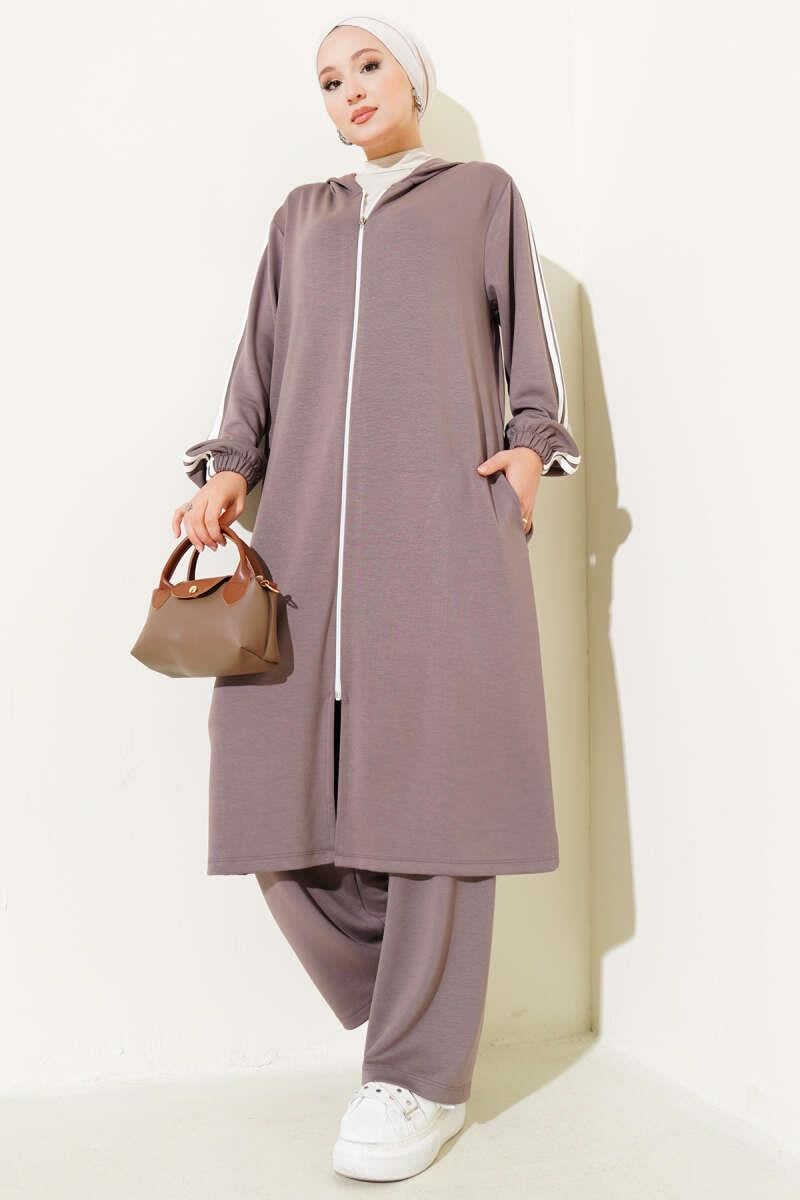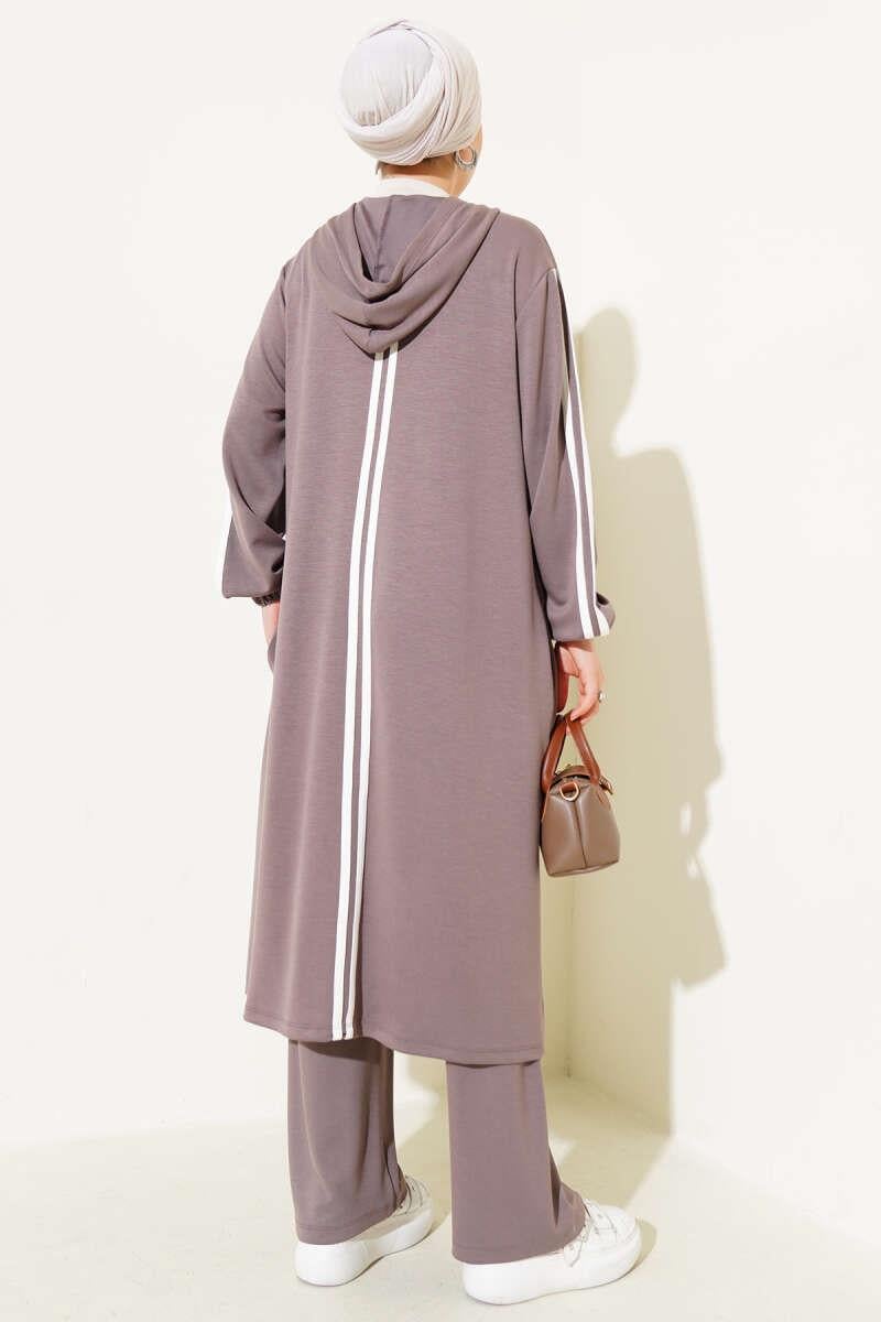 Kapüşonlu Uzun Tunik İkili Takım Vizon (0829-5380-670200)