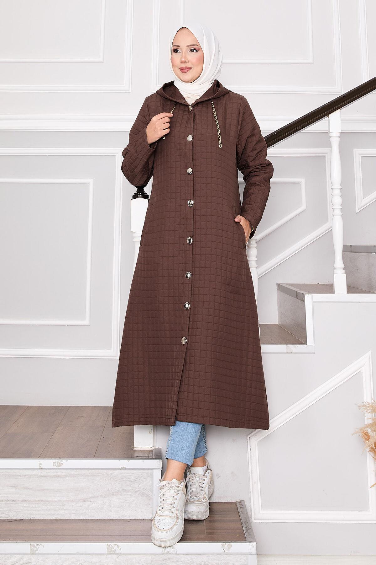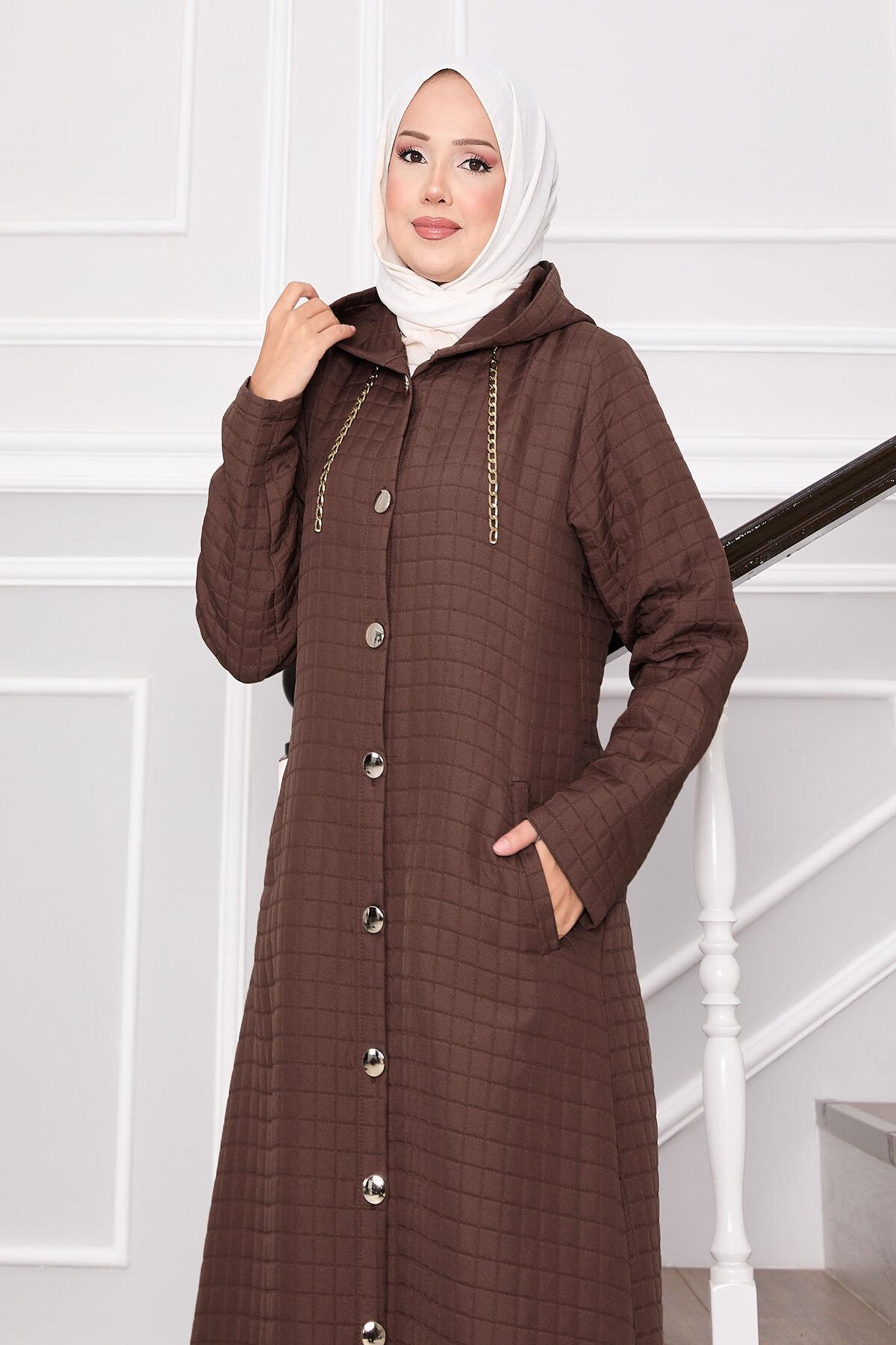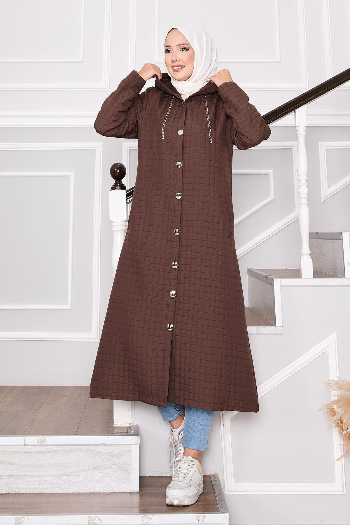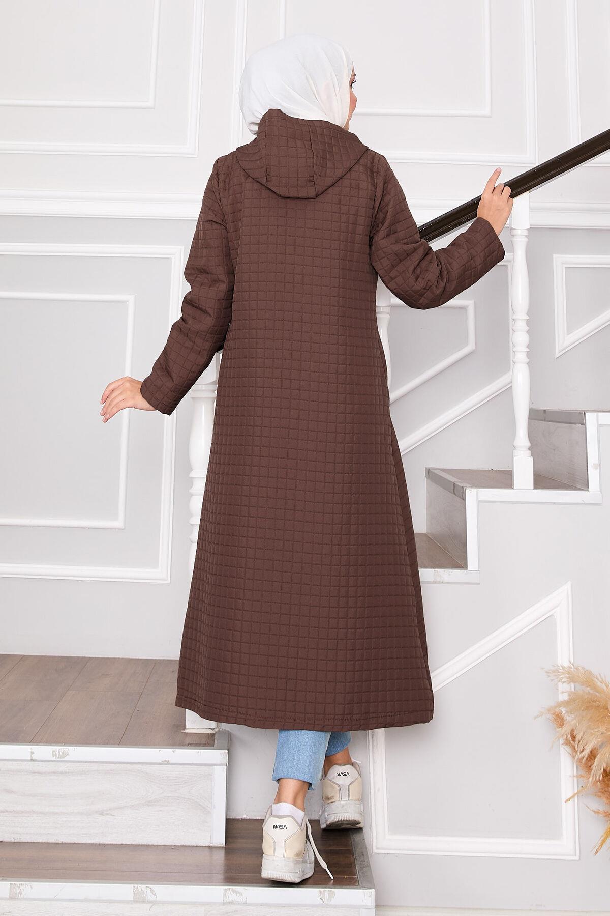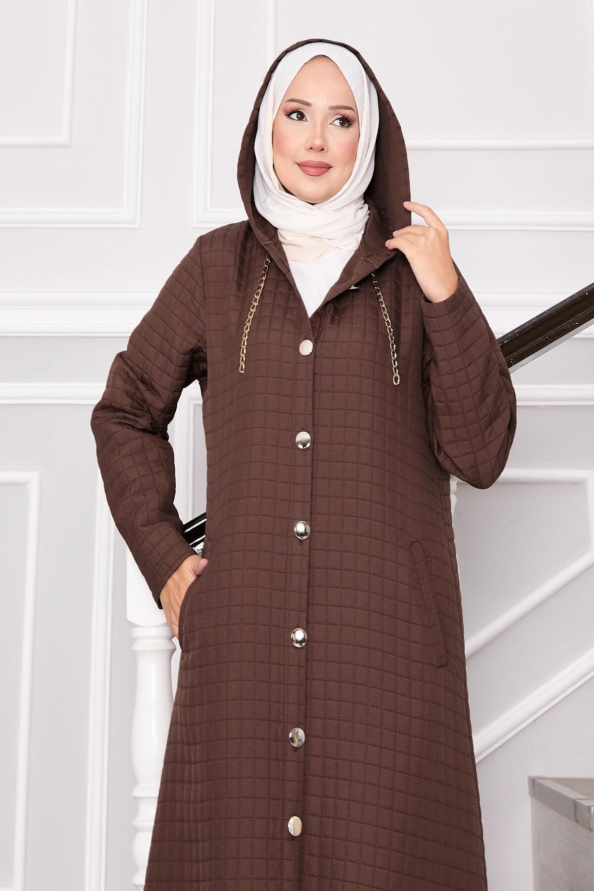 Kapüşonlu Ve Cep Detaylı Kapitone Kap Kahve (125M01917633R2542)