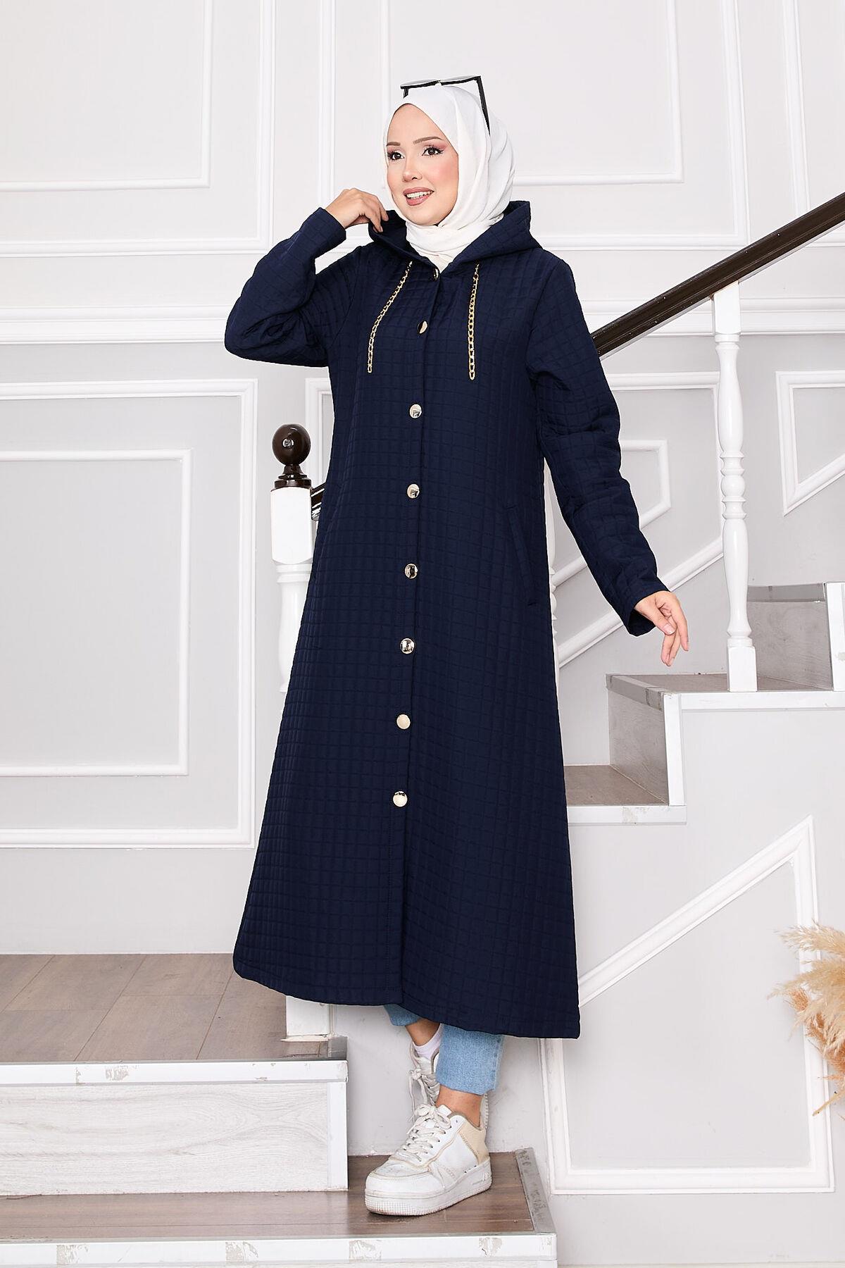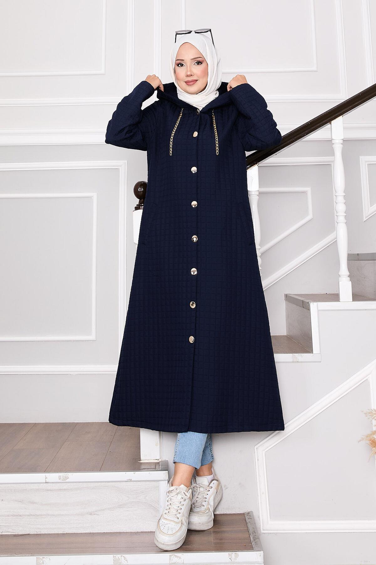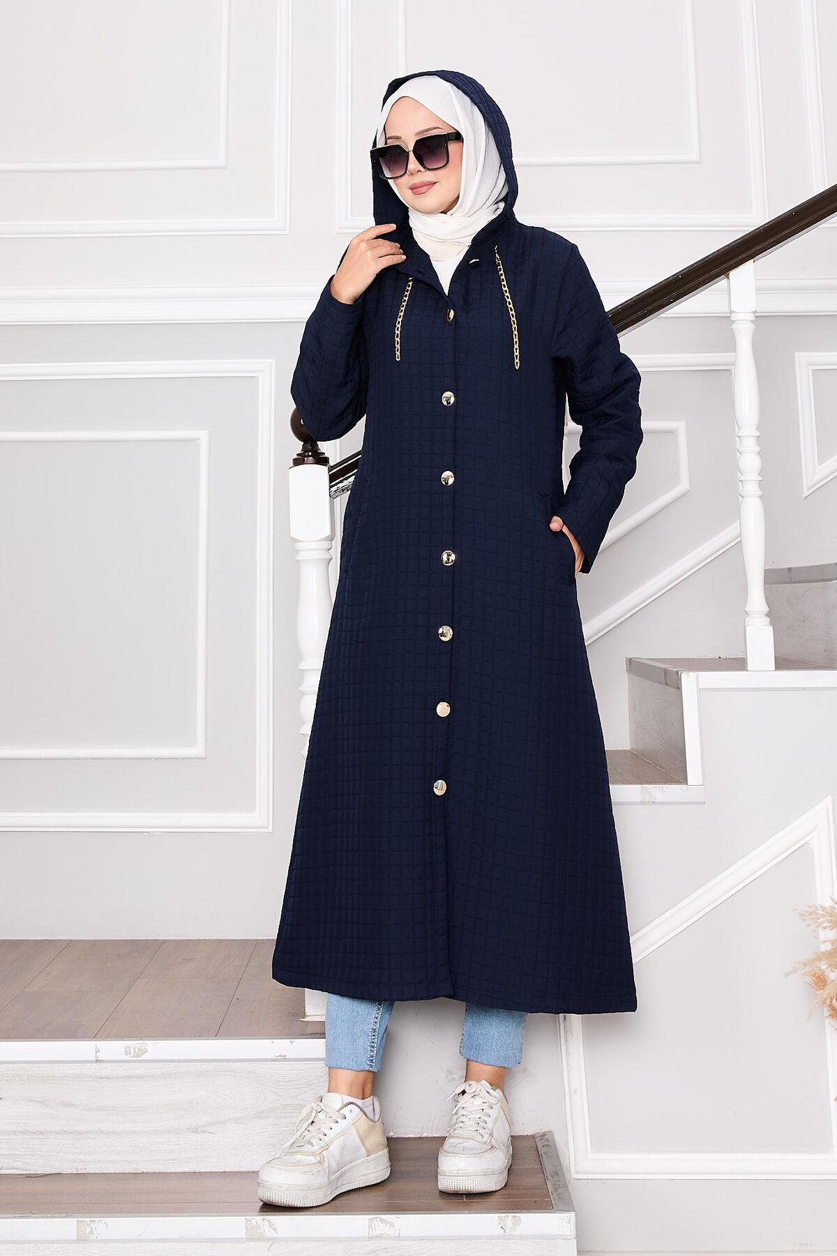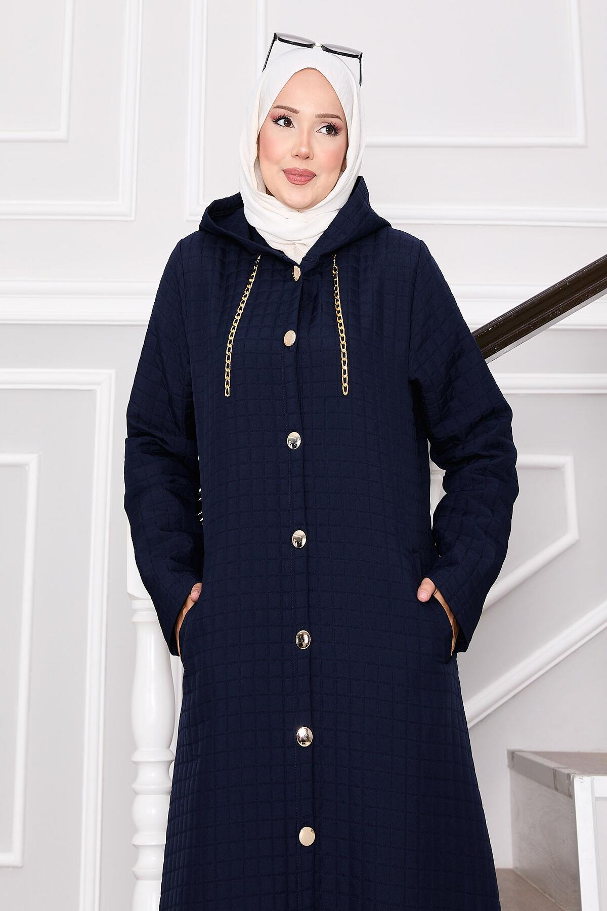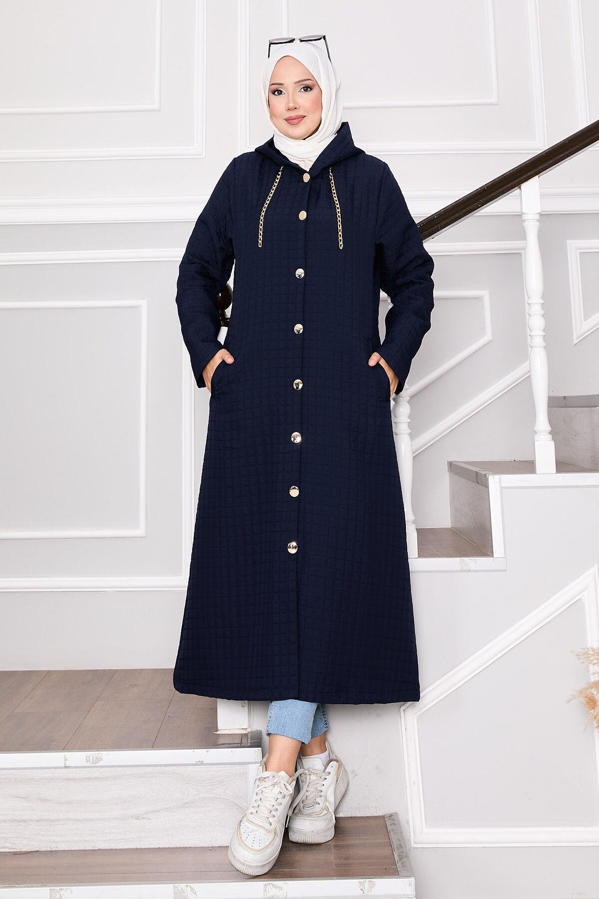 Kapüşonlu Ve Cep Detaylı Kapitone Kap Lacivert (125M01917633R3342)