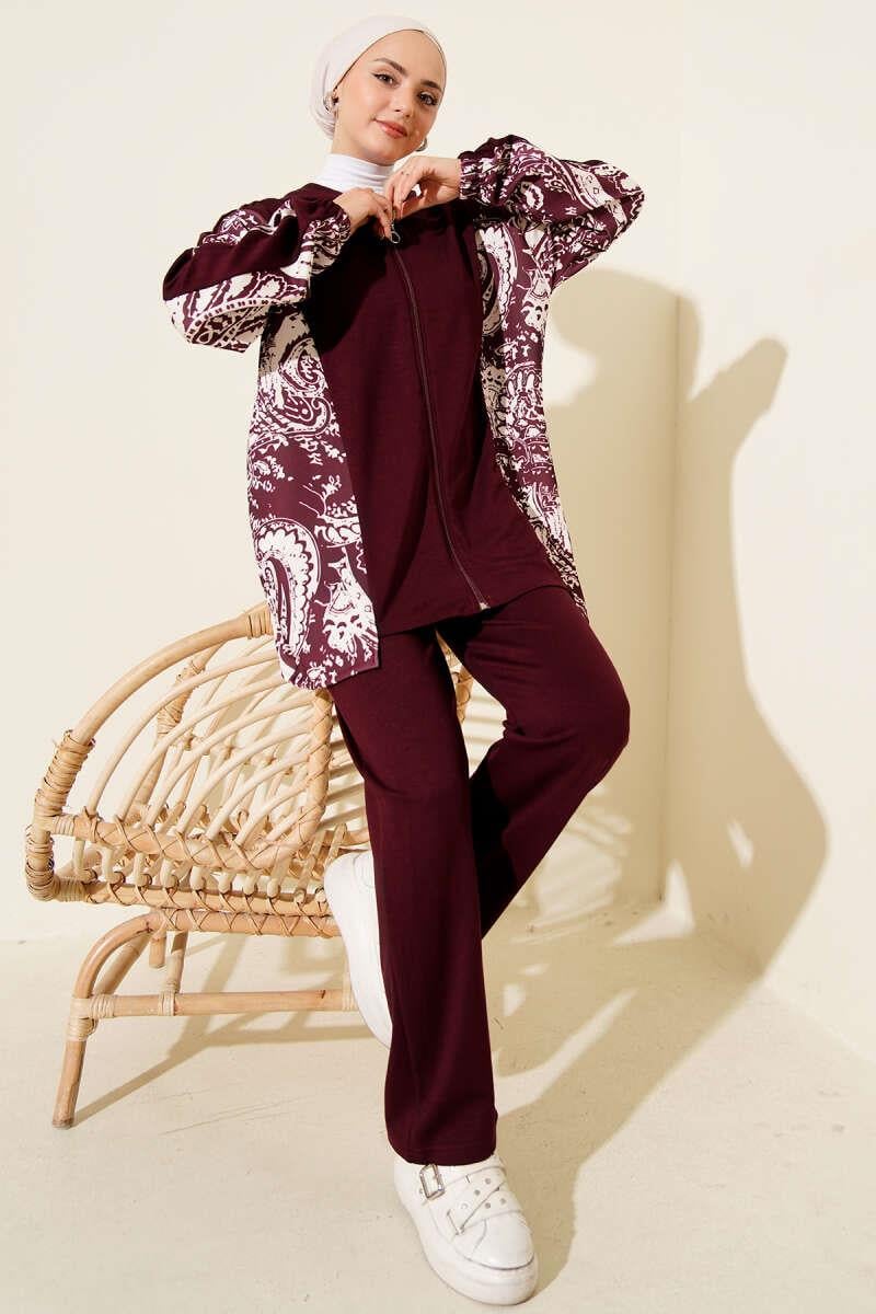 Karışık Desenli Fermuarlı İkili Takım Bordo (0026-3233-689353)