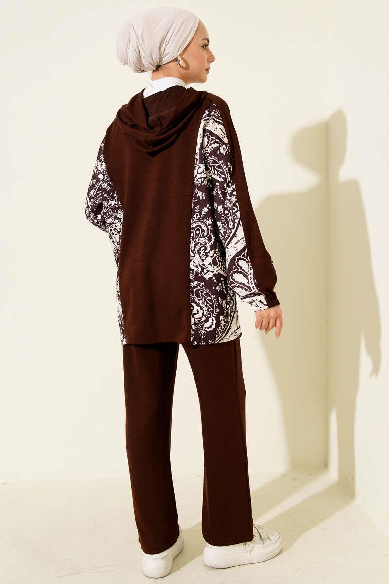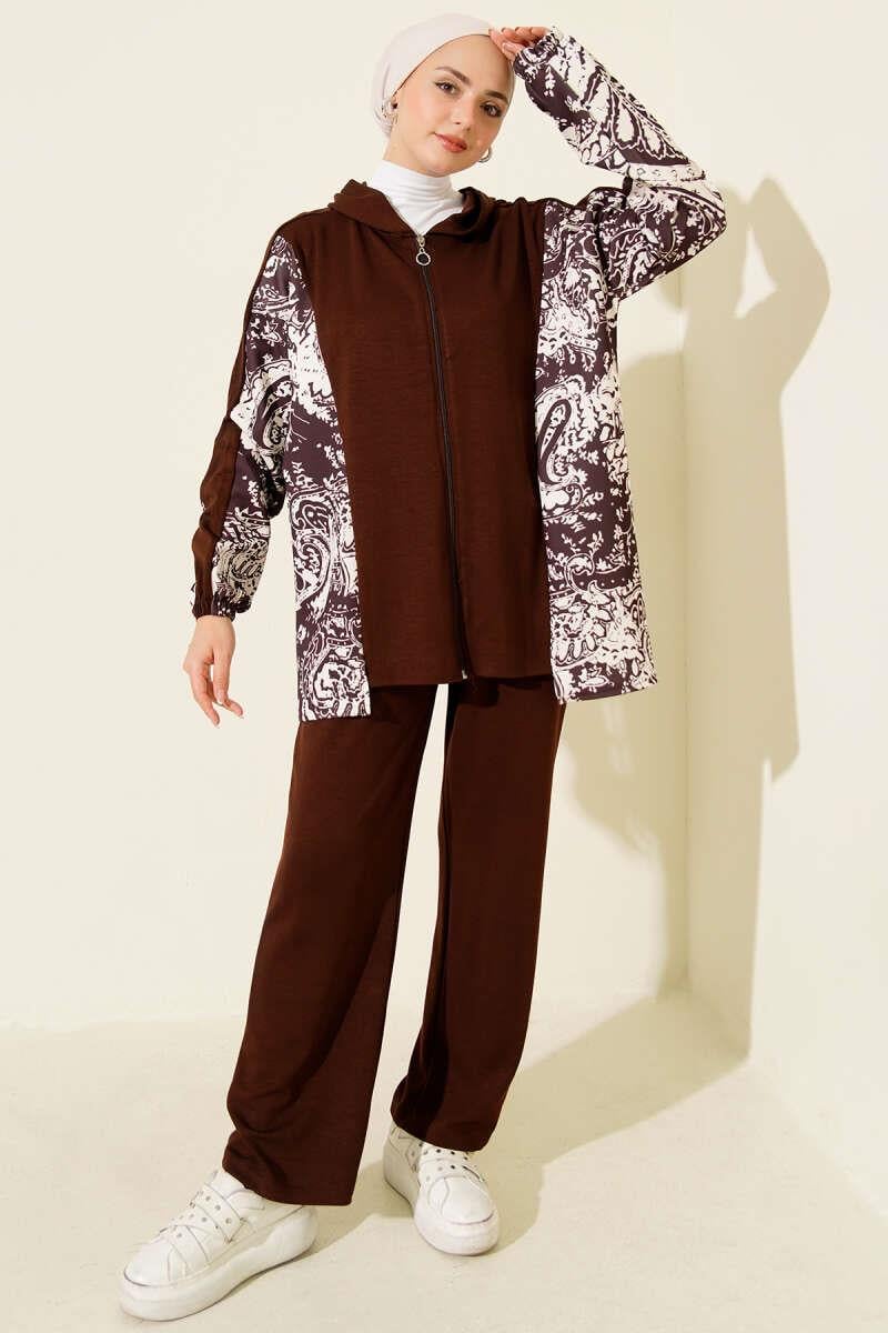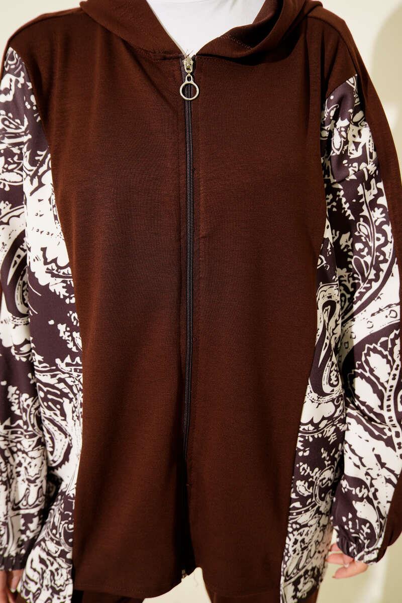 Karışık Desenli Fermuarlı İkili Takım Kahve (0026-3233-689360)