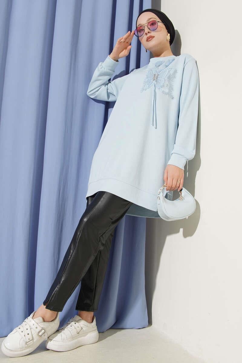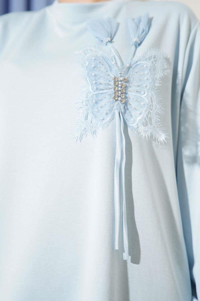 Kelebek Detaylı Loyşa Tunik Buz Mavisi (0350-26120-666966)