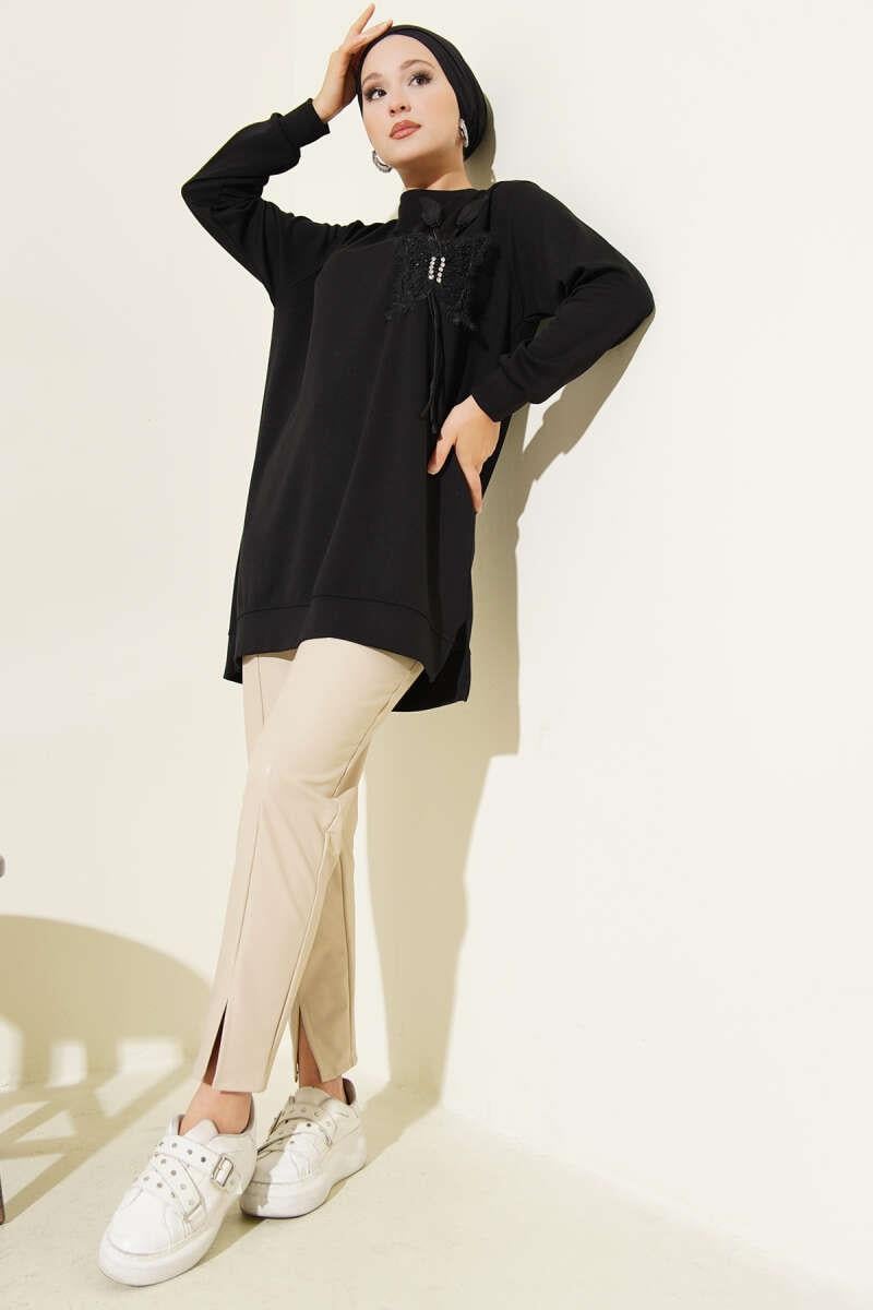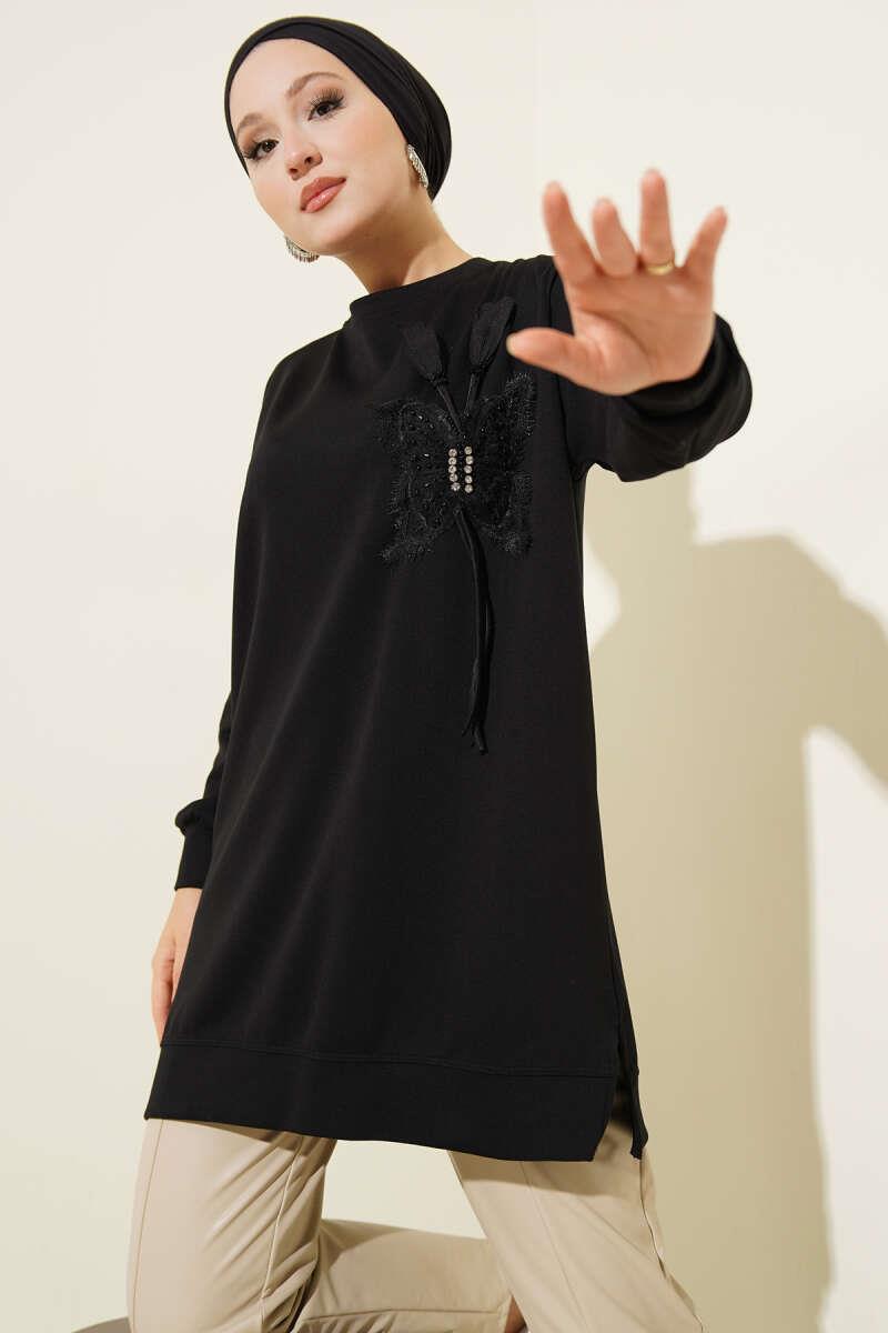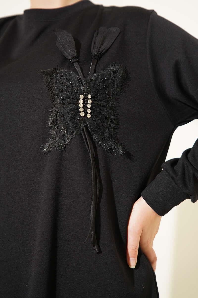 Kelebek Detaylı Loyşa Tunik Siyah (0350-26120-666974)