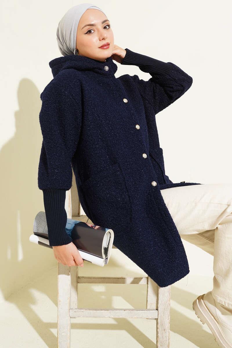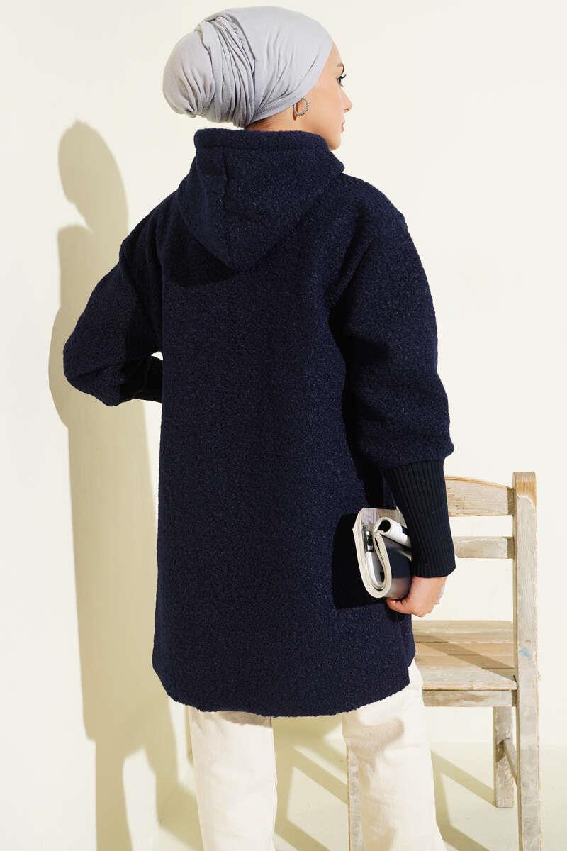 Kol Ribanalı Kapüşonlu Buklet Kap Lacivert (0569-3157-685753)