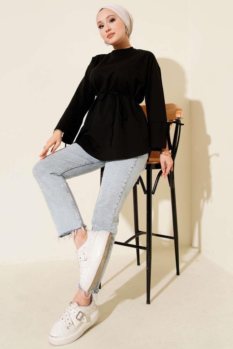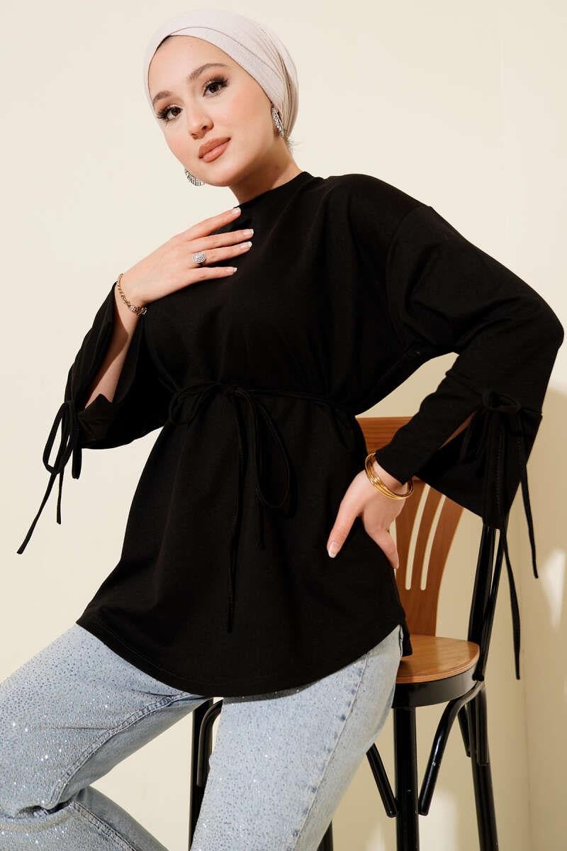 Kolları Bağcıklı İki İpli Tunik Siyah (0997-4344-685626)