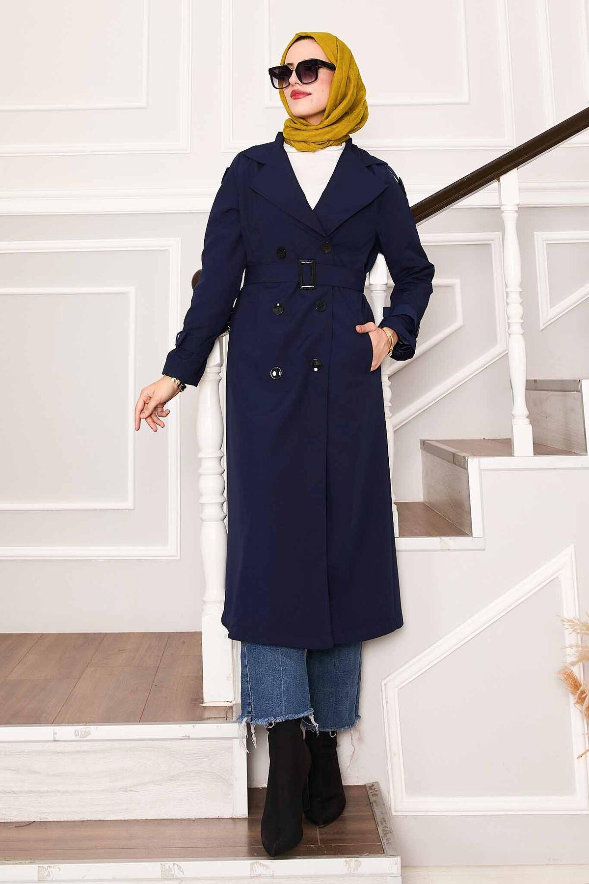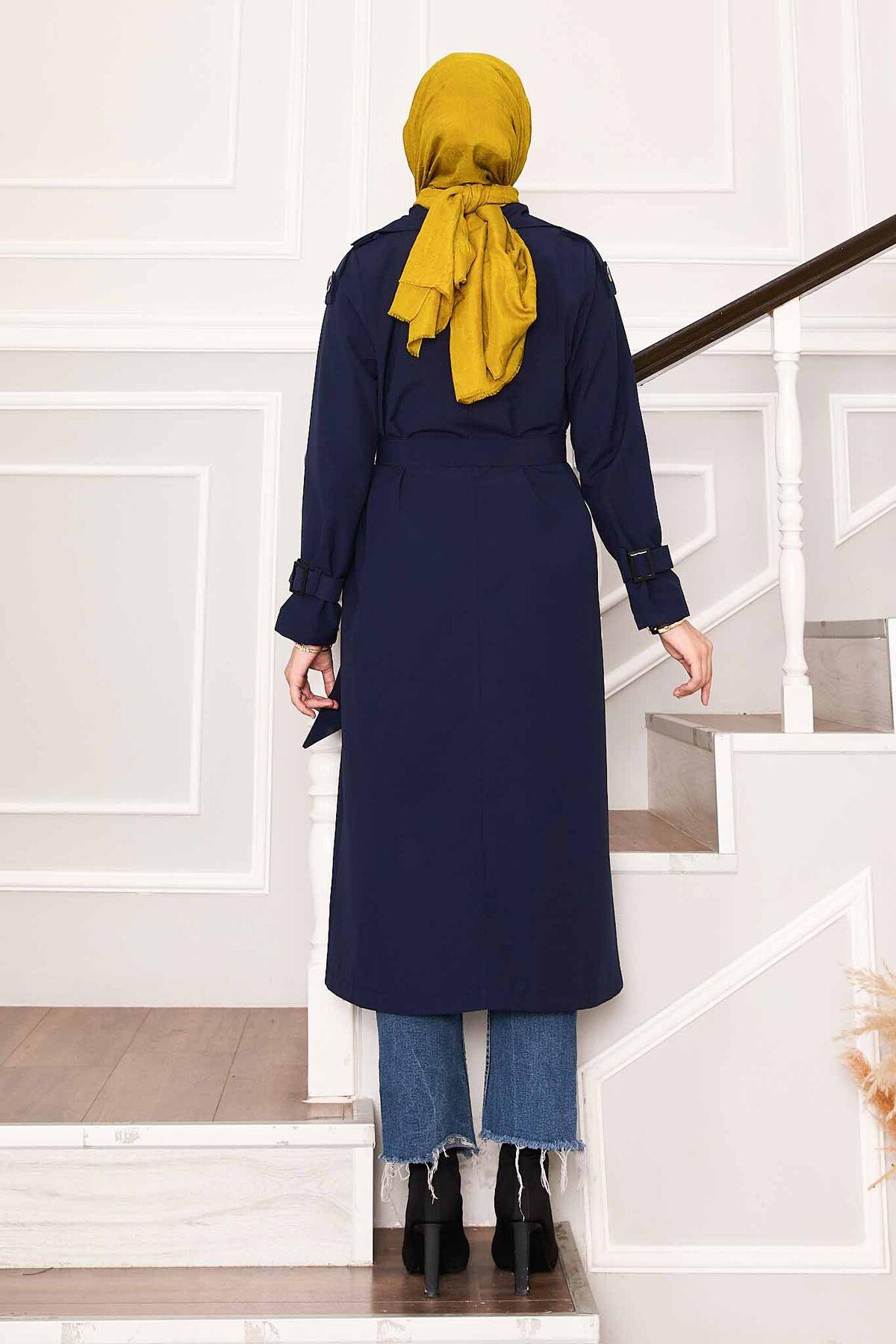 Kolu Kemer Detaylı Su Geçirmez Trenç Lacivert (120M01920757R3338)