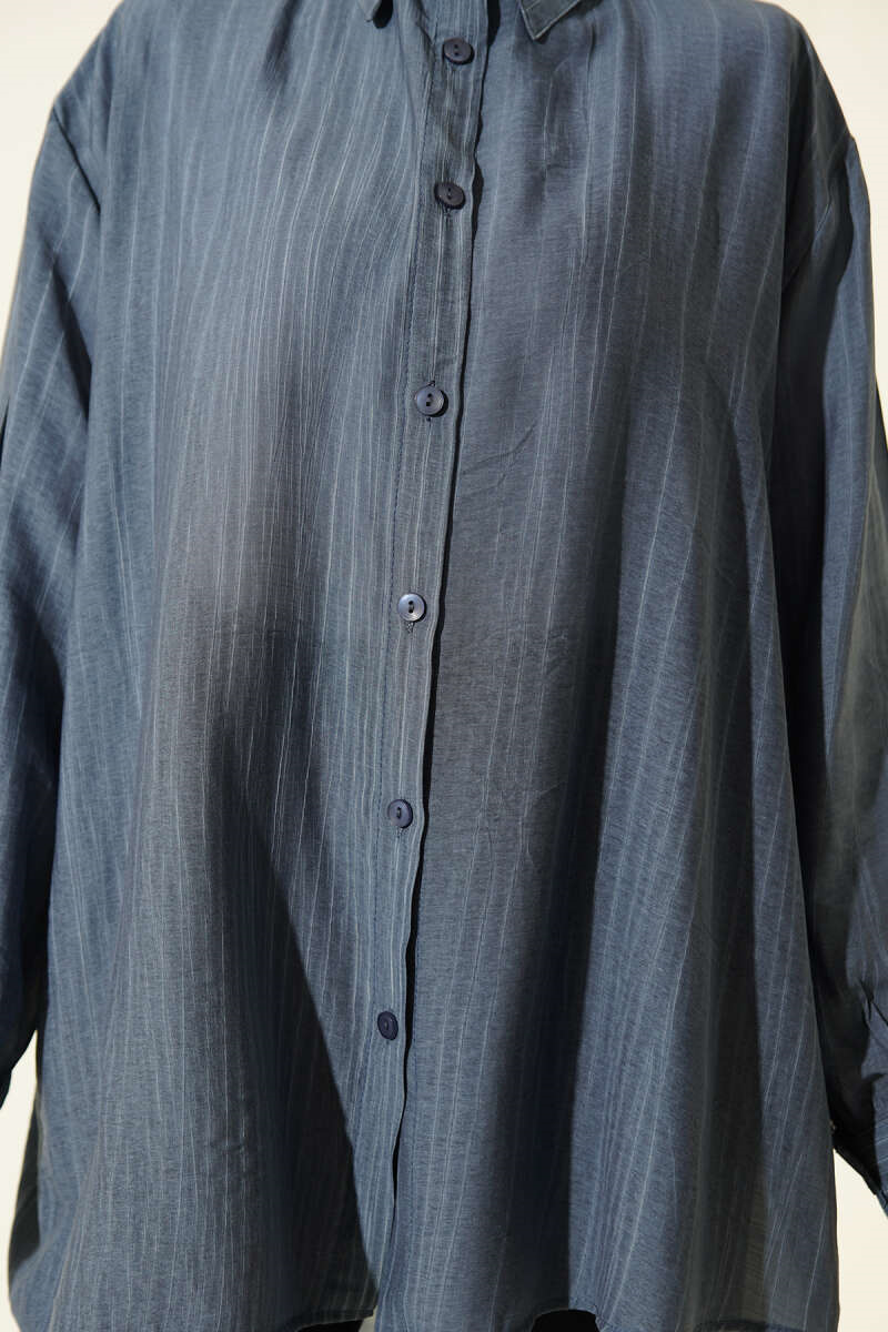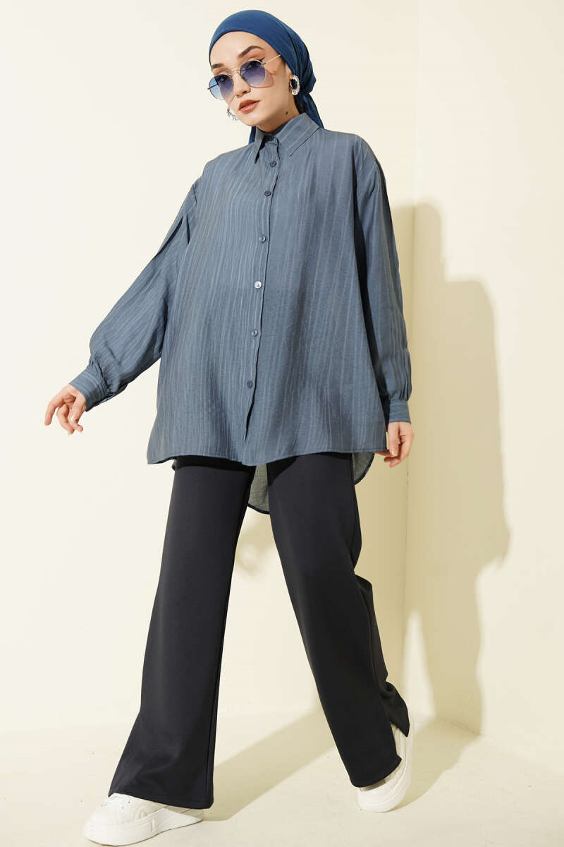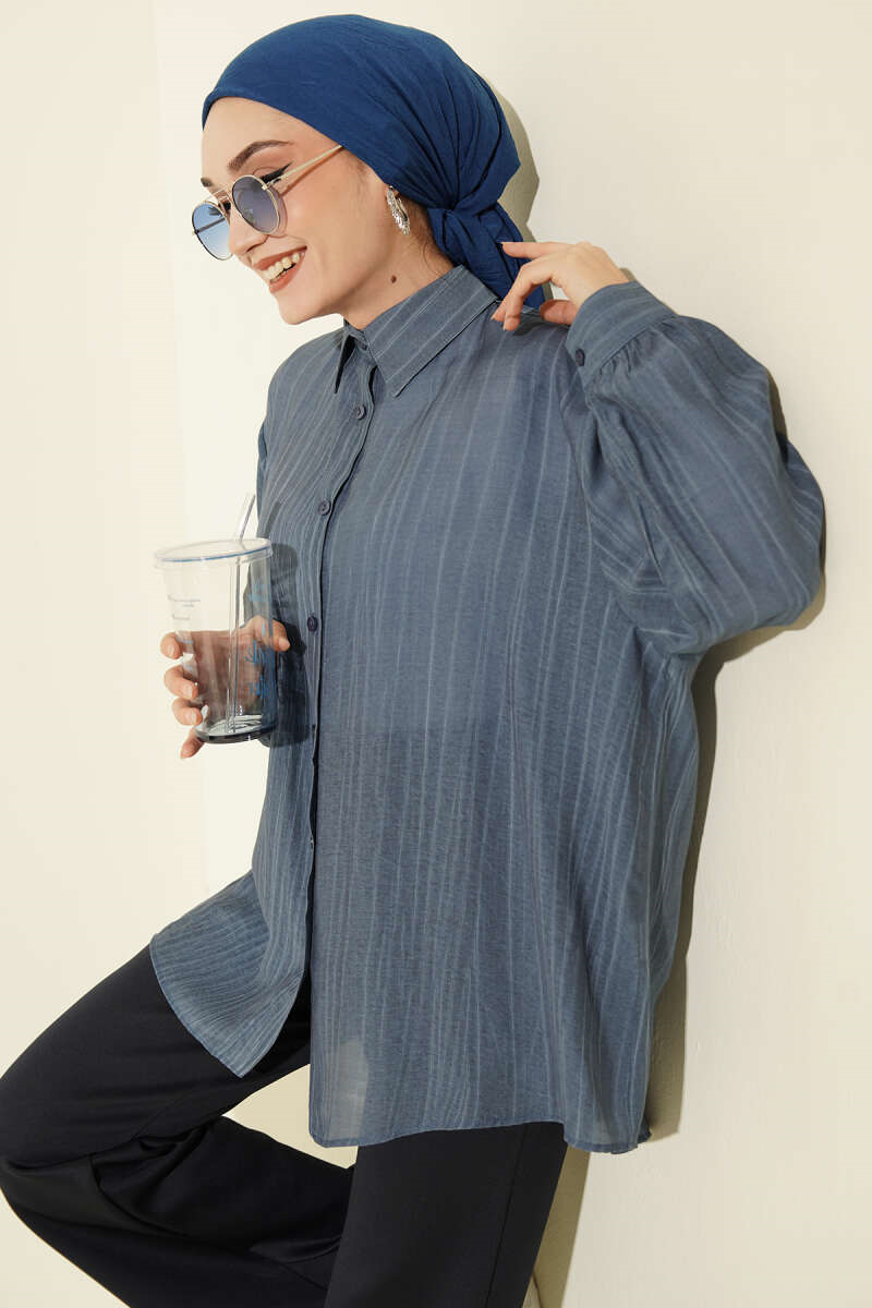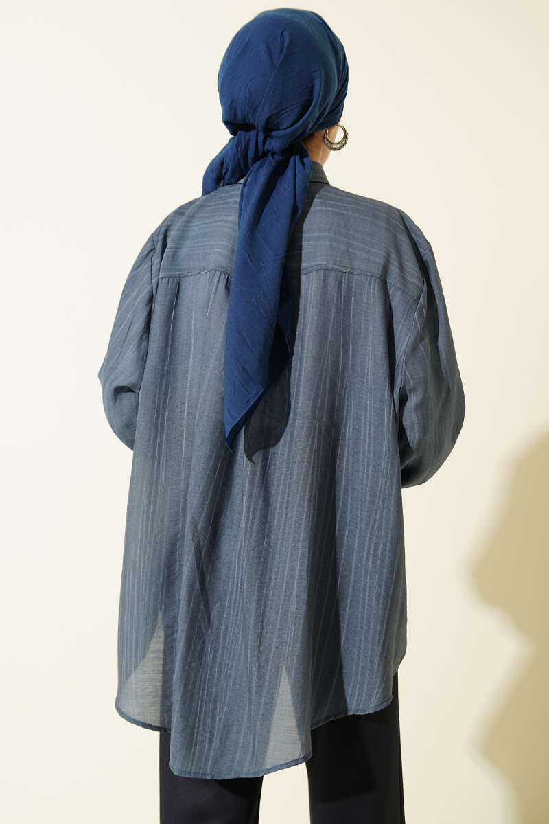 Kraşlı Oversize Gömlek İndigo (8900-2621-728123)