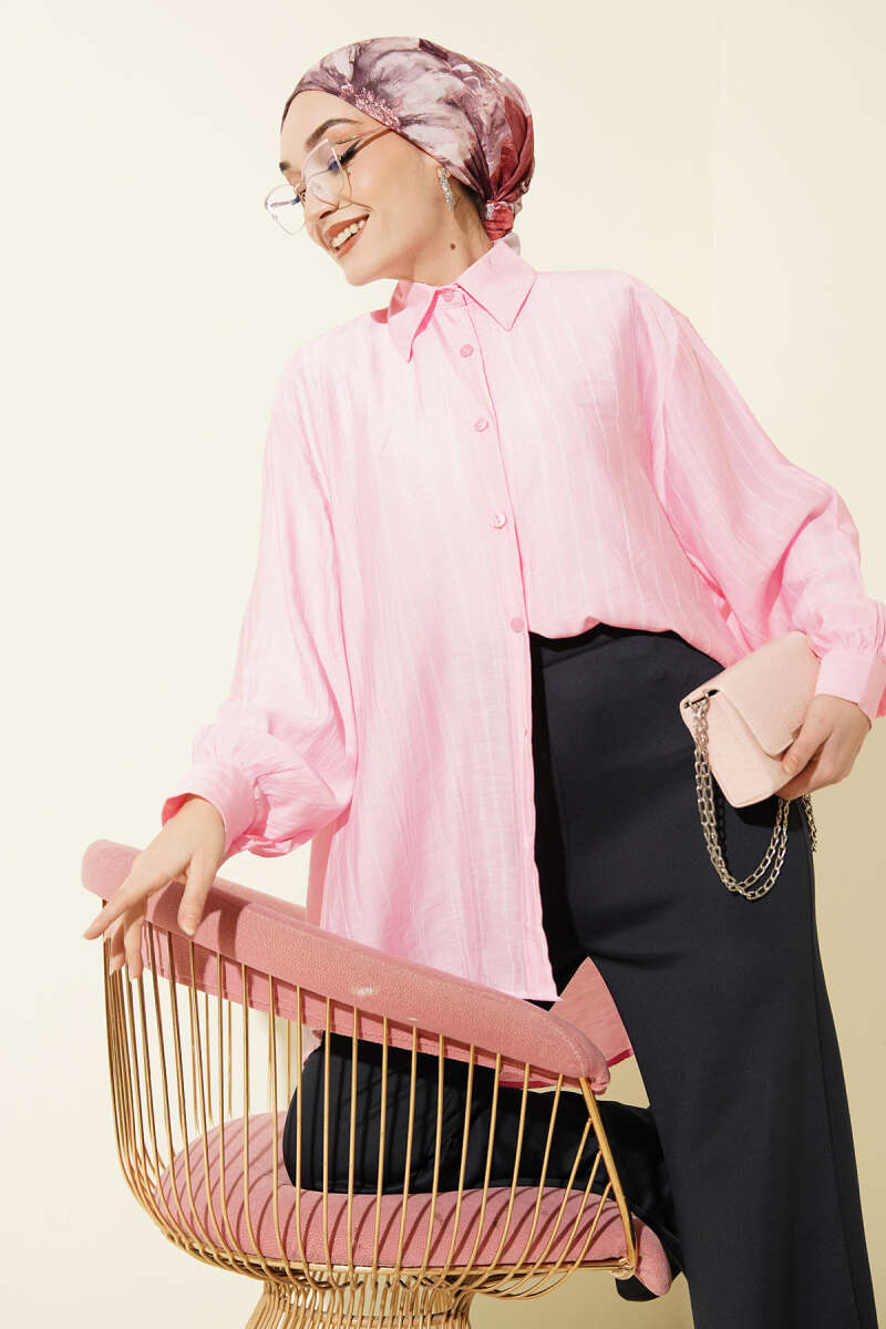 Kraşlı Oversize Gömlek Pembe (8900-2621-728124)