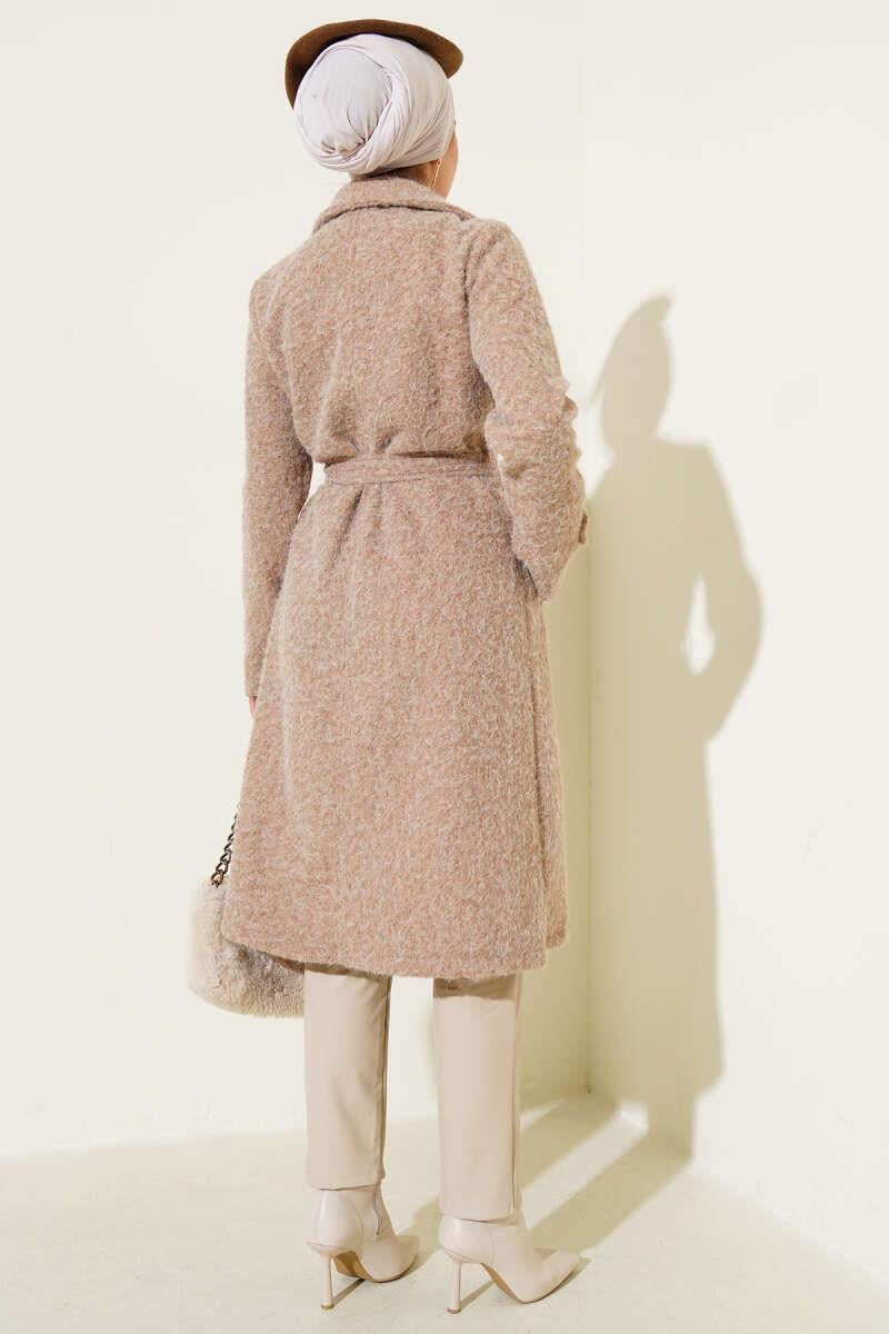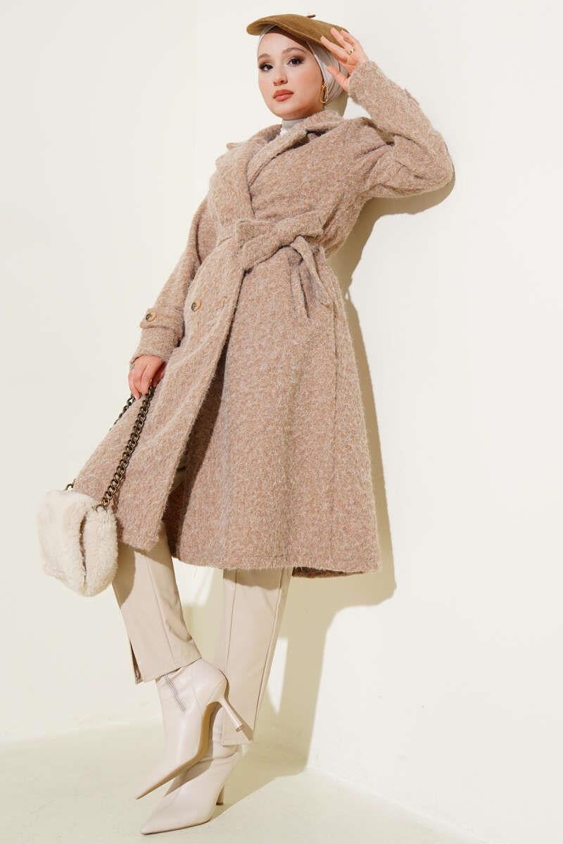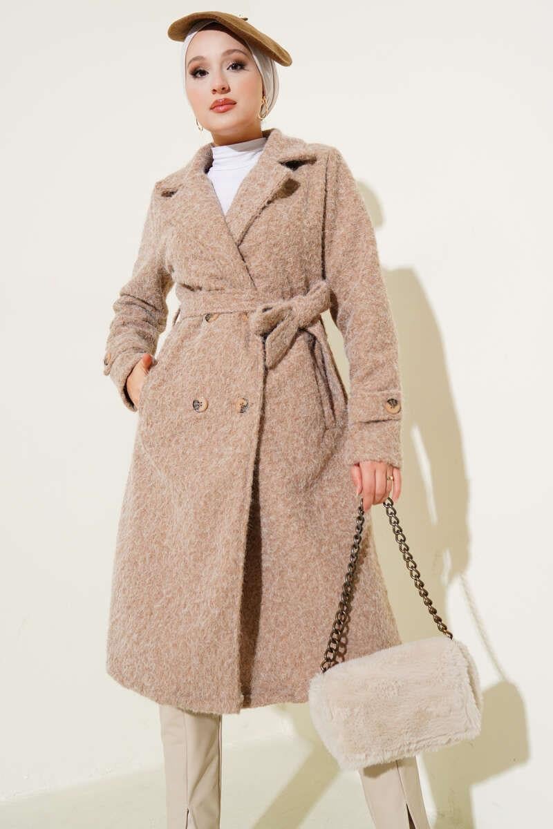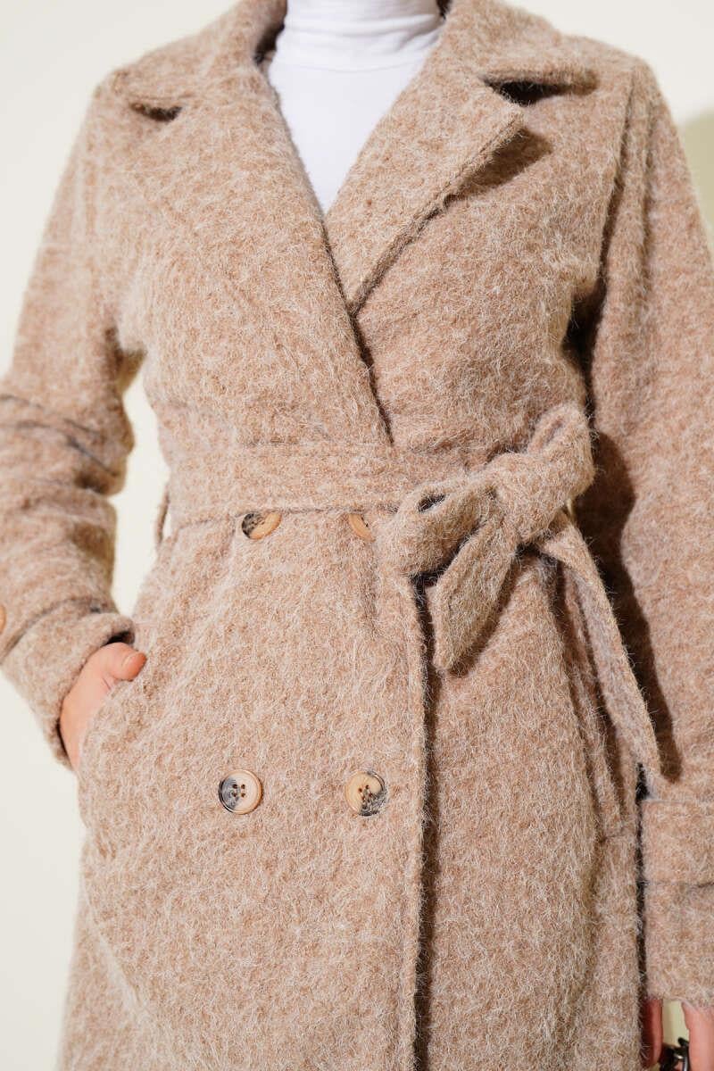 Kruvaze Yaka Kuşaklı Kaşe Kaban Camel (0569-3053-40-672272)