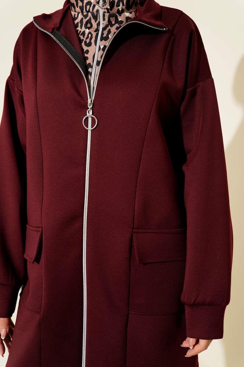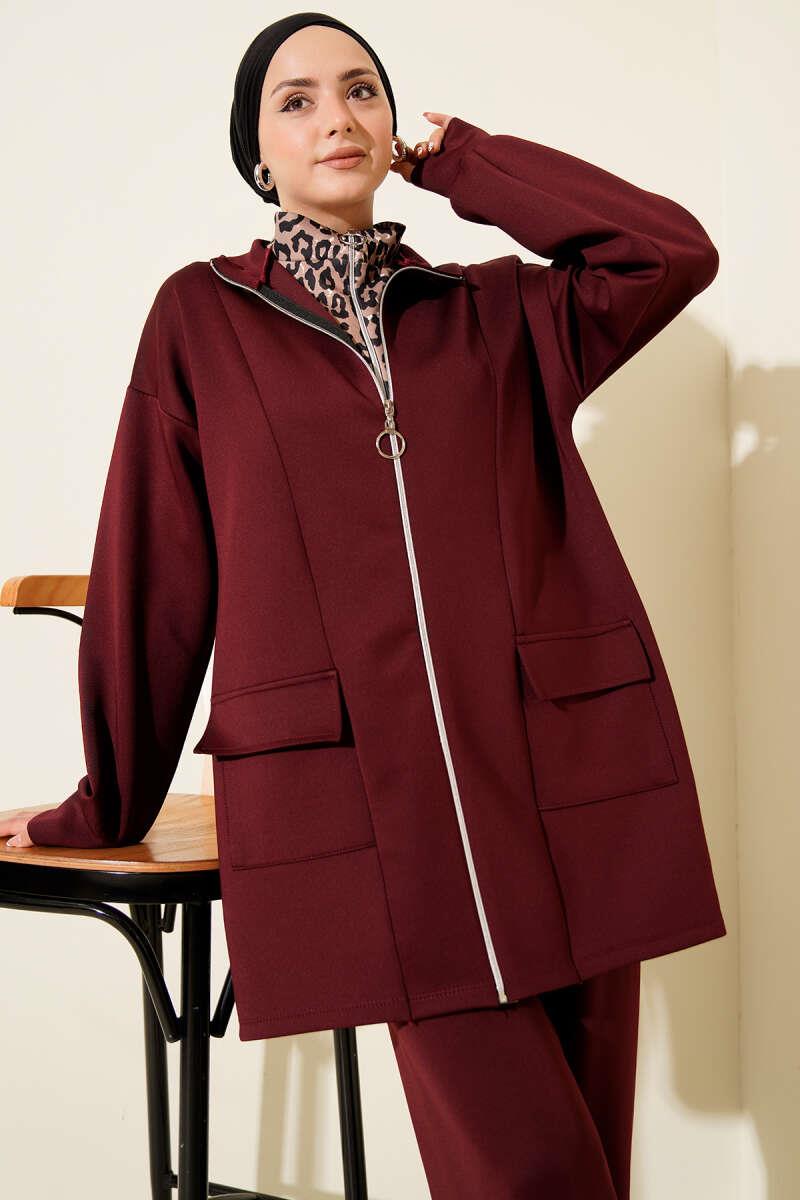 Leopar Garnili Fermuarlı Scuba İkili Takım Bordo (0829-5338-686009)