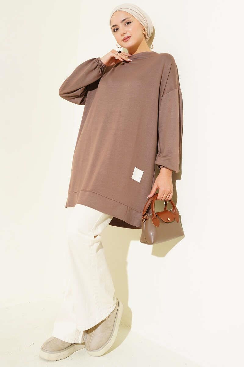 Loyşa Arma Detaylı Salaş Tunik Kahve (0997-8940-684667)