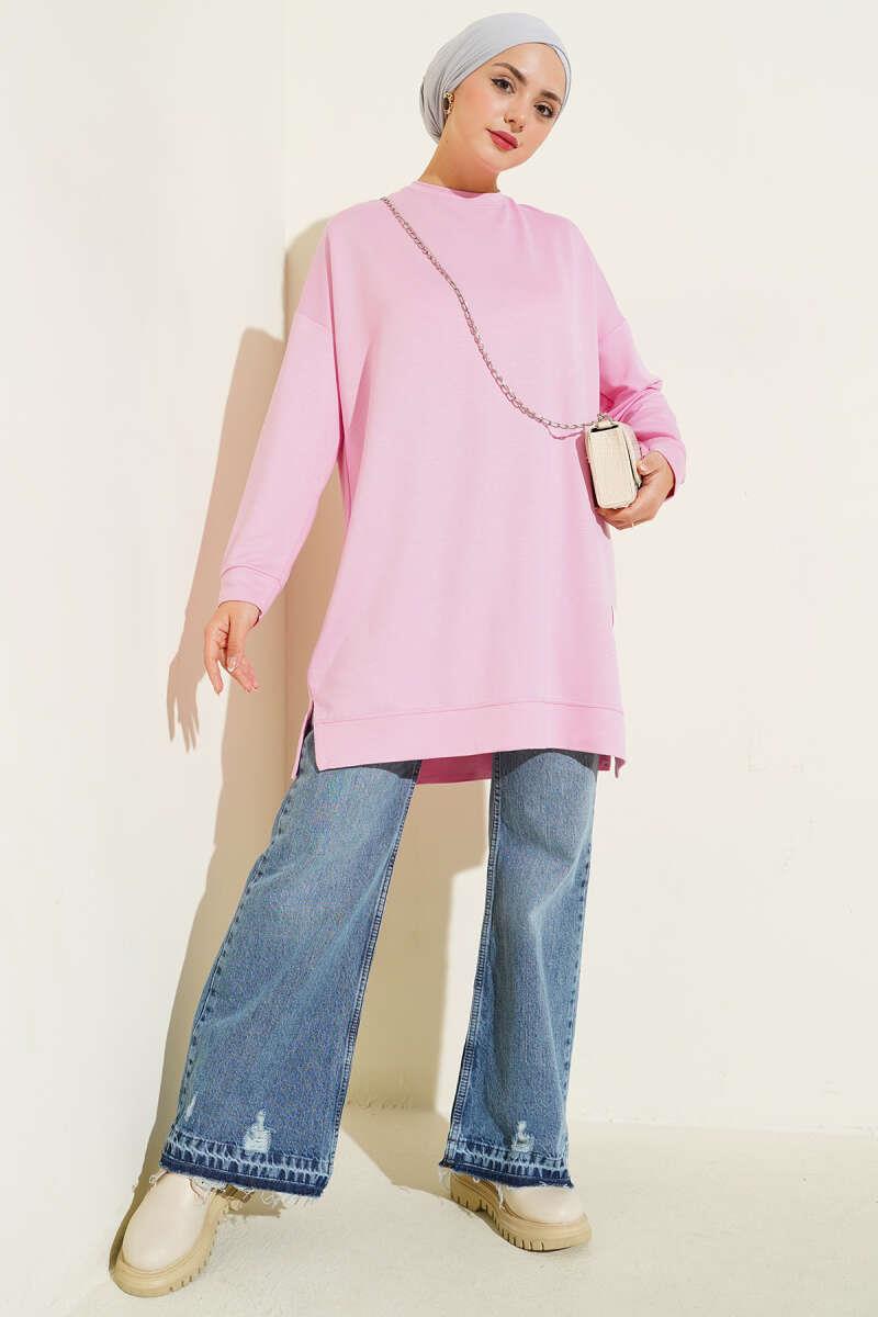 Loyşa Armalı Basic Tunik Pembe (0997-8939-685998)
