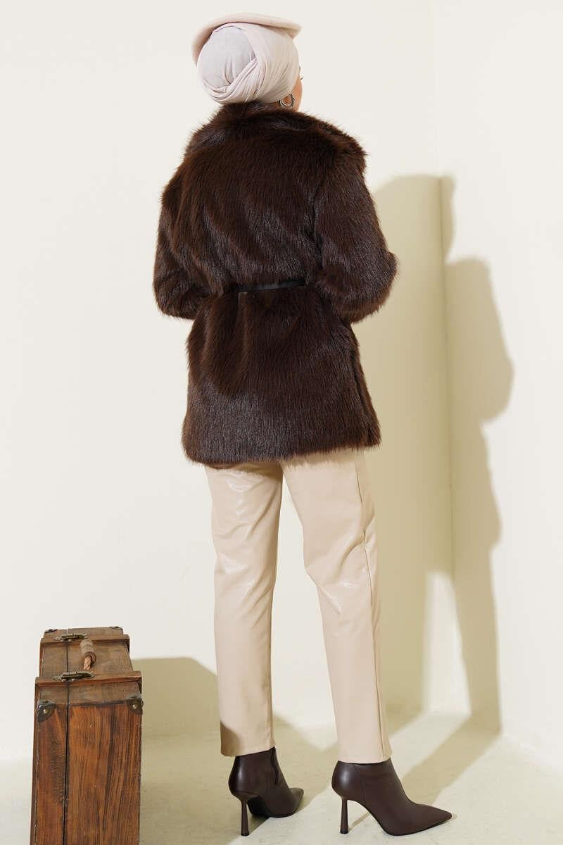 Madonna Yaka Kemerli Kürk Mont Kahve (0569-3156-10-672396)