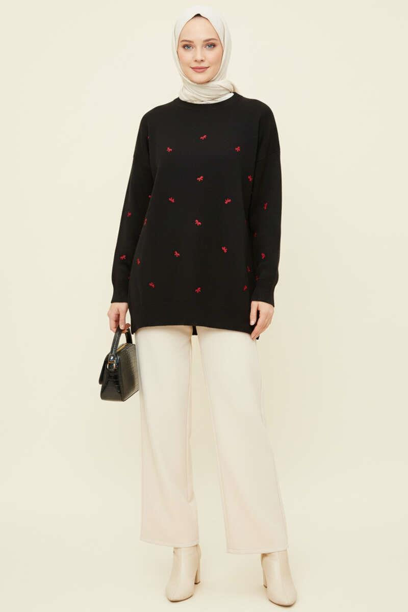 Mini Fiyonklu Triko Tunik Siyah (6999-3251-684488)