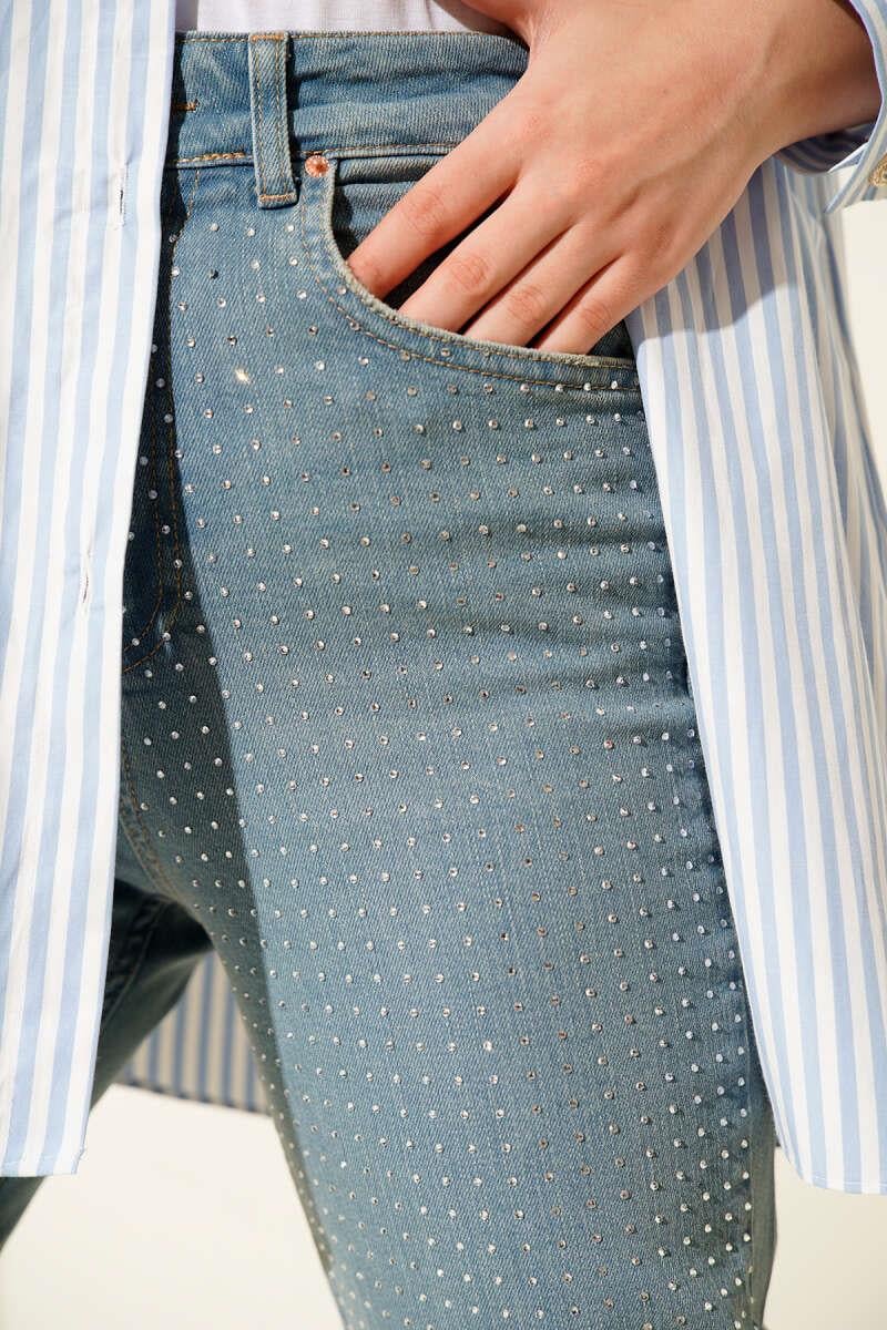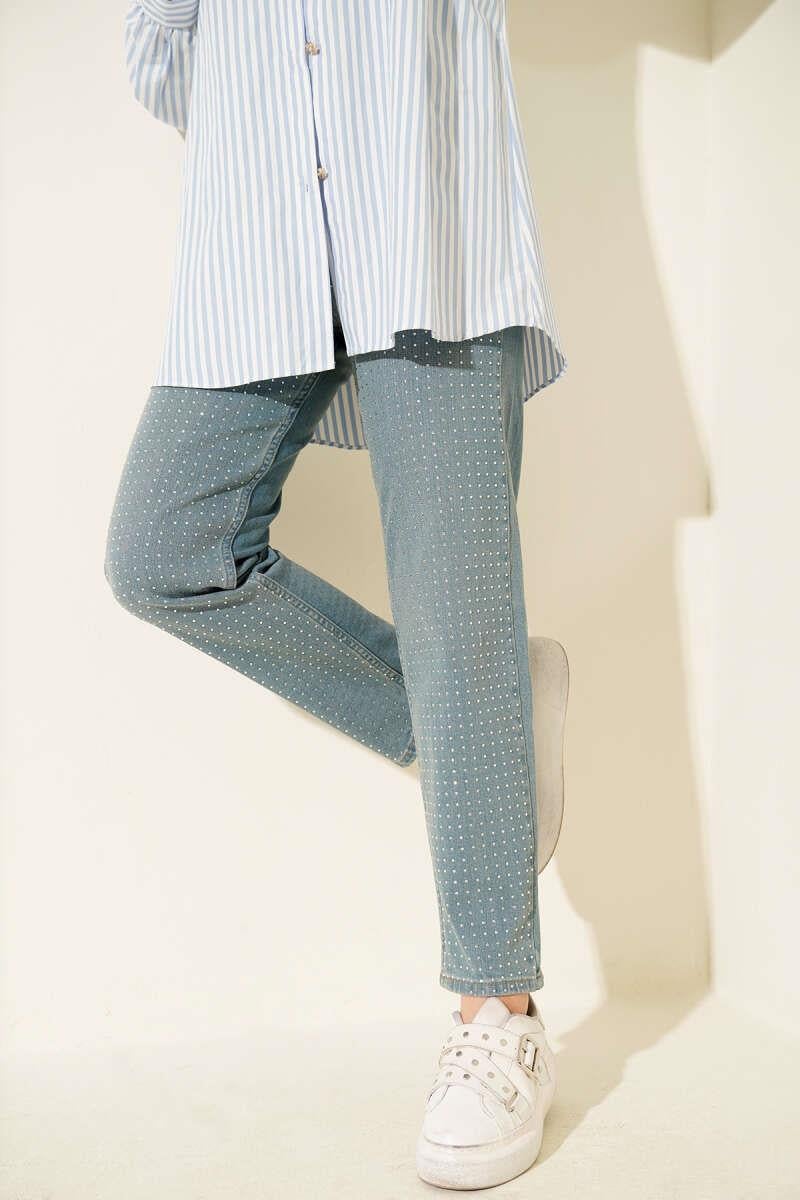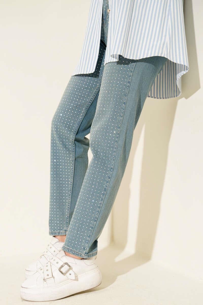 Mini Taşlı Kot Pantolon Açık Tint (0055-1027-680016)