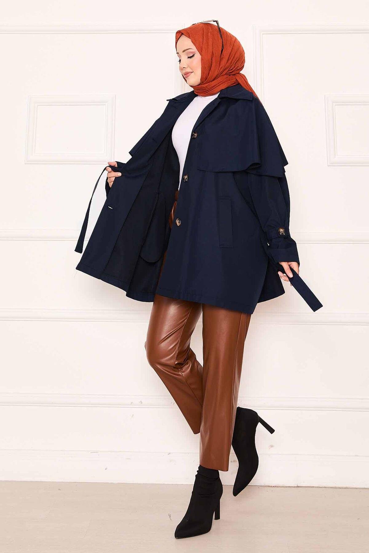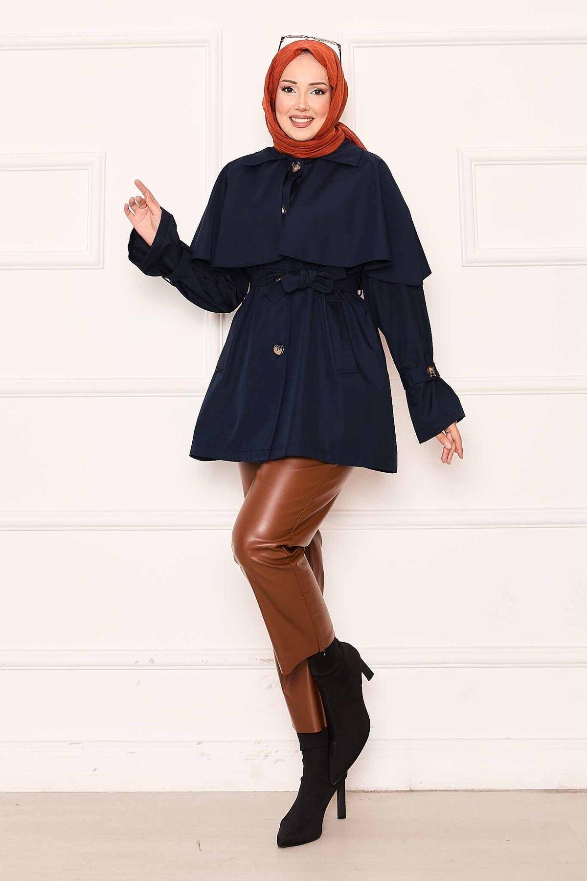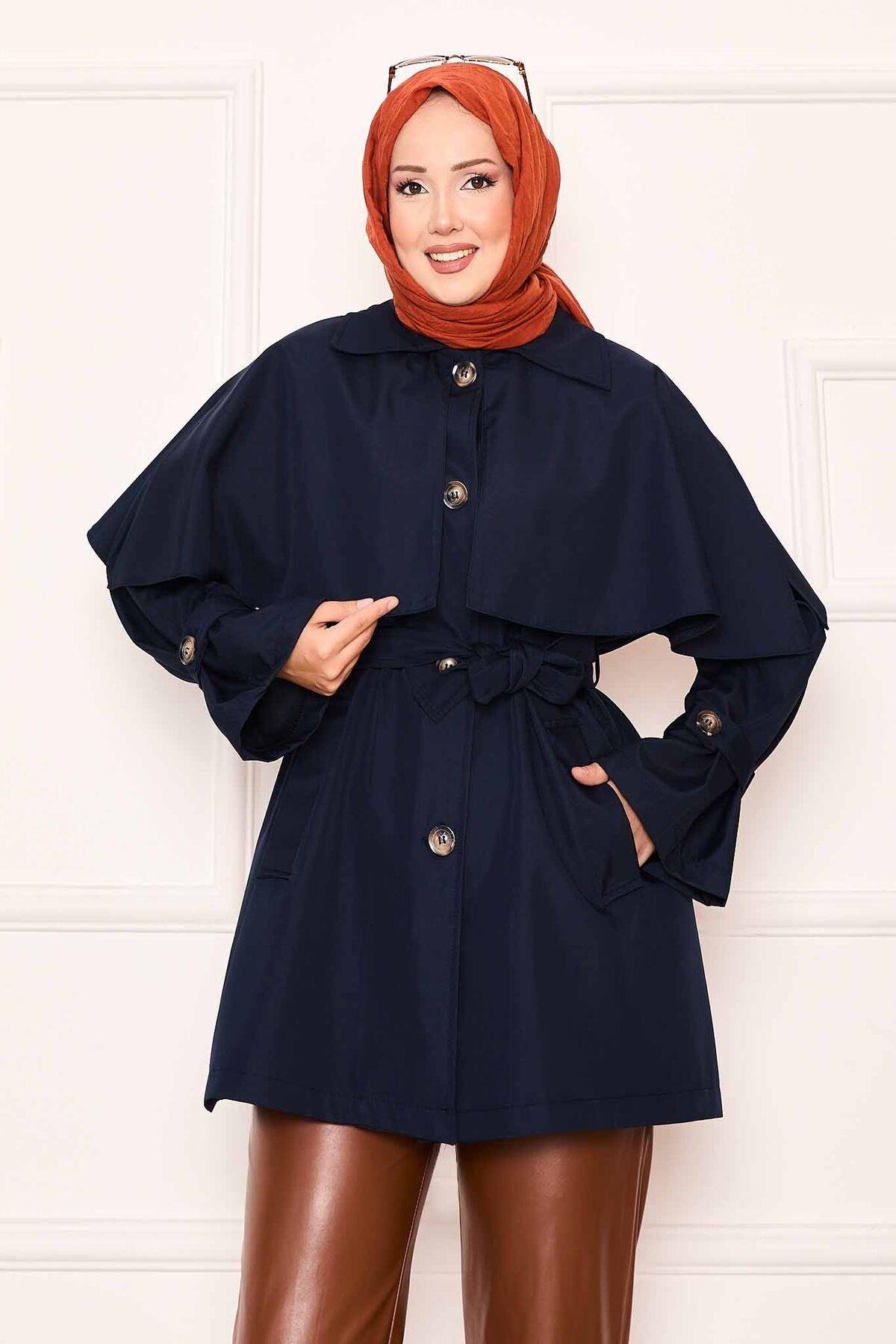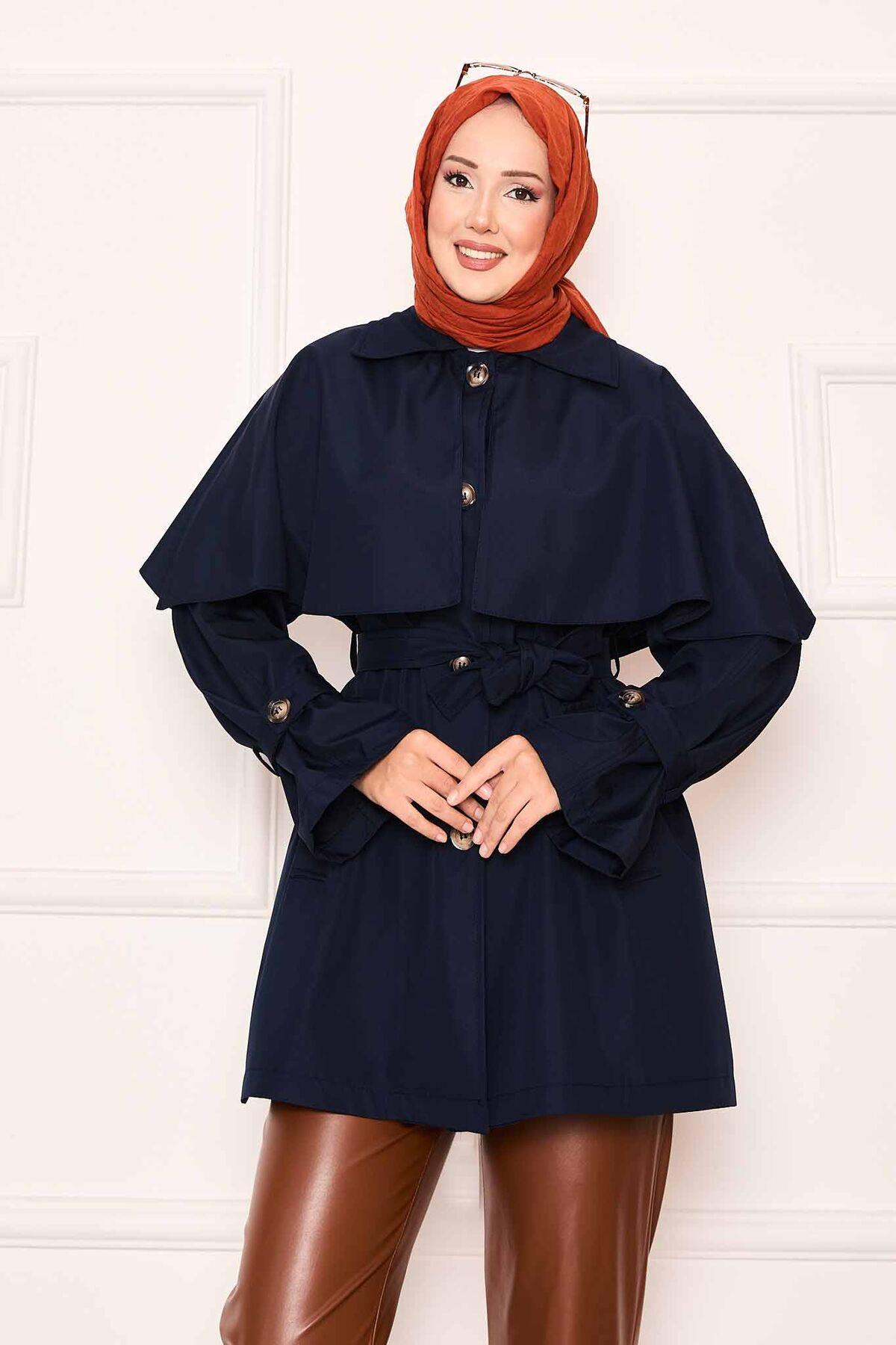 Minimal Pelerin Detaylı Kemerli Trençkot Lacivert (125M01927461R33STD)