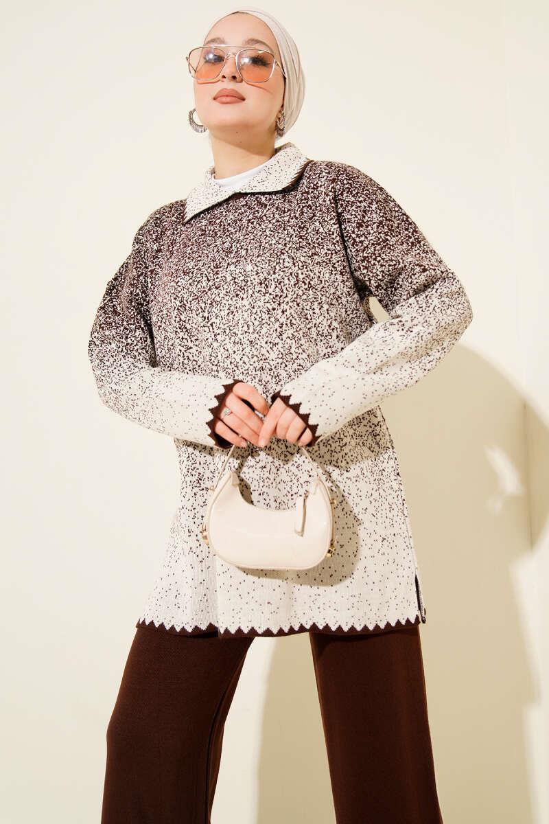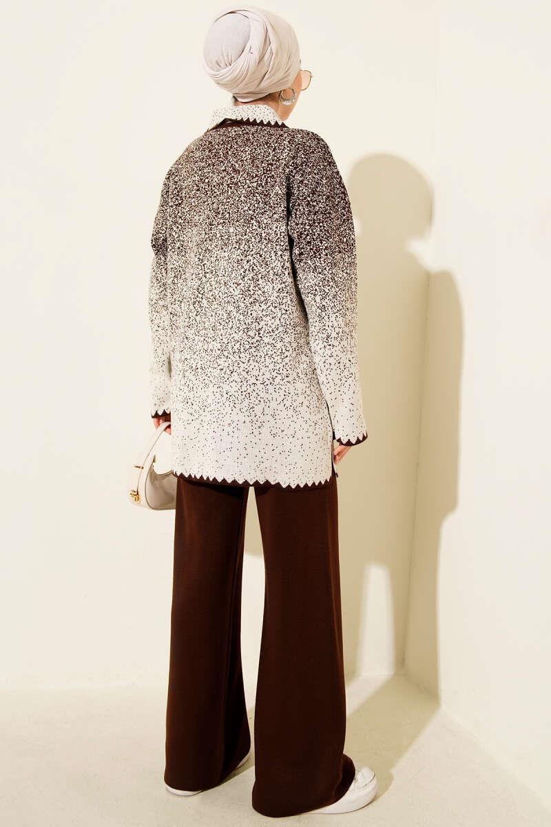 Nokta Desen Gömlek Yaka Triko Takım Kahve (8700-1123-687864)