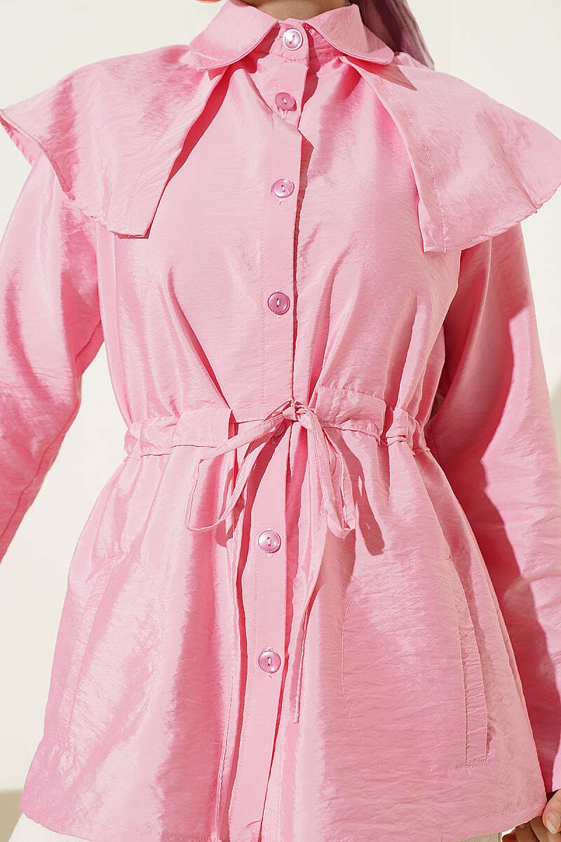 Omuz Parçalı Bel Tünelli Gömlek Pembe (0823-0471-750455)