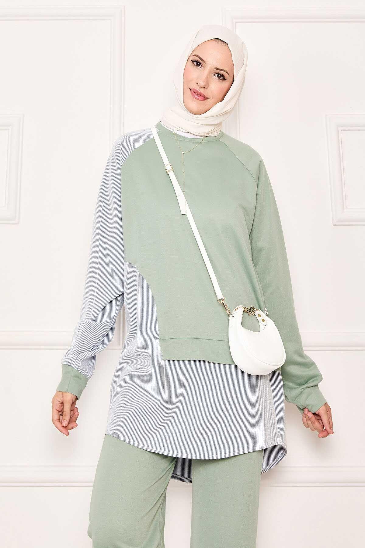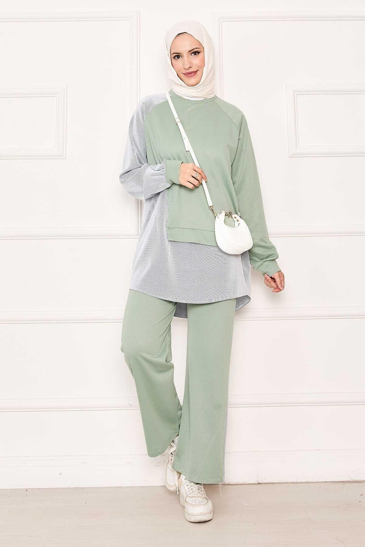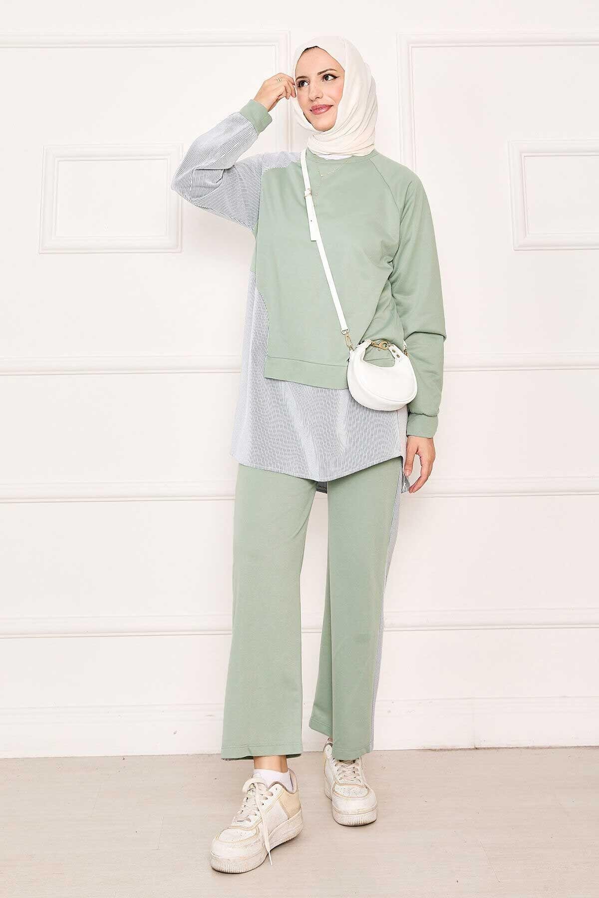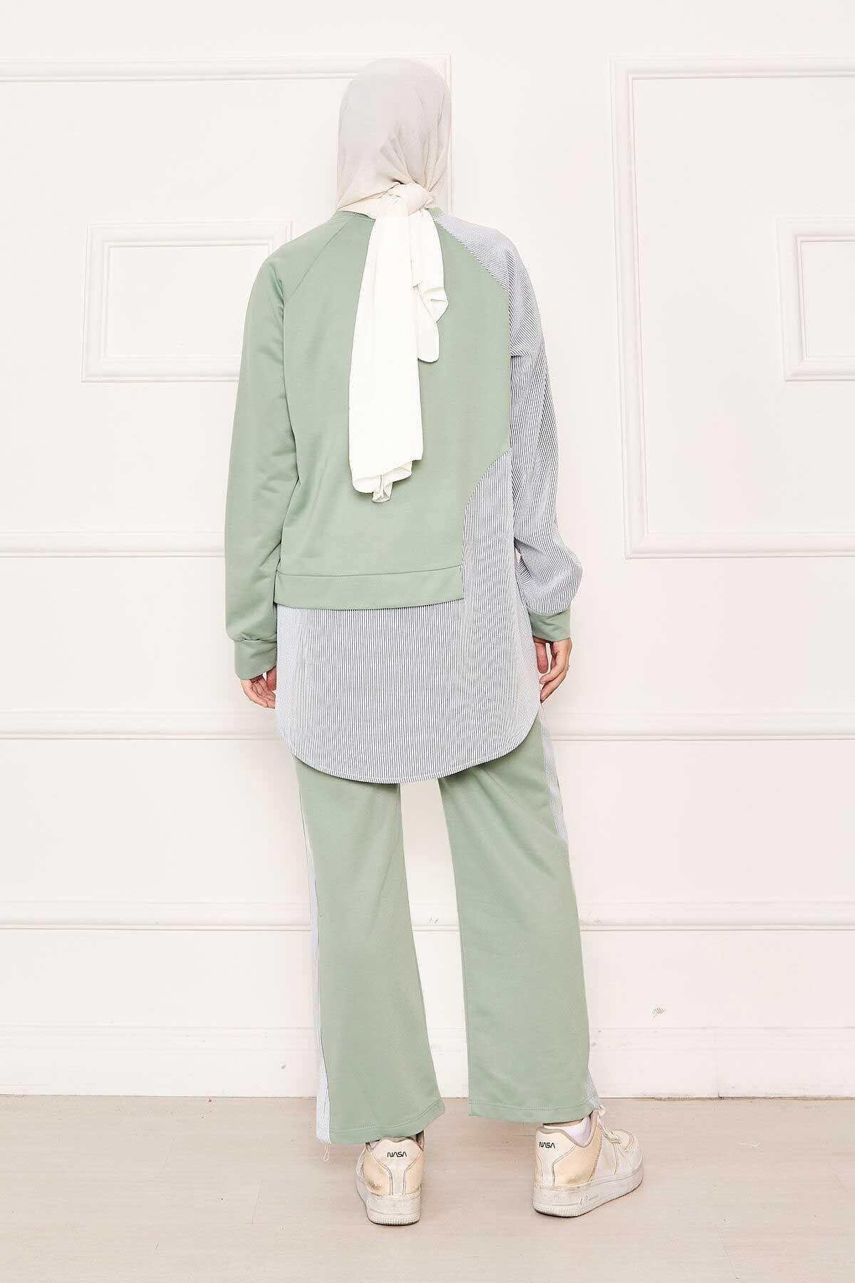 Önü Asimetrik Çizgi Garnili İkili Takım Su Yeşili (125M00614566t5846)