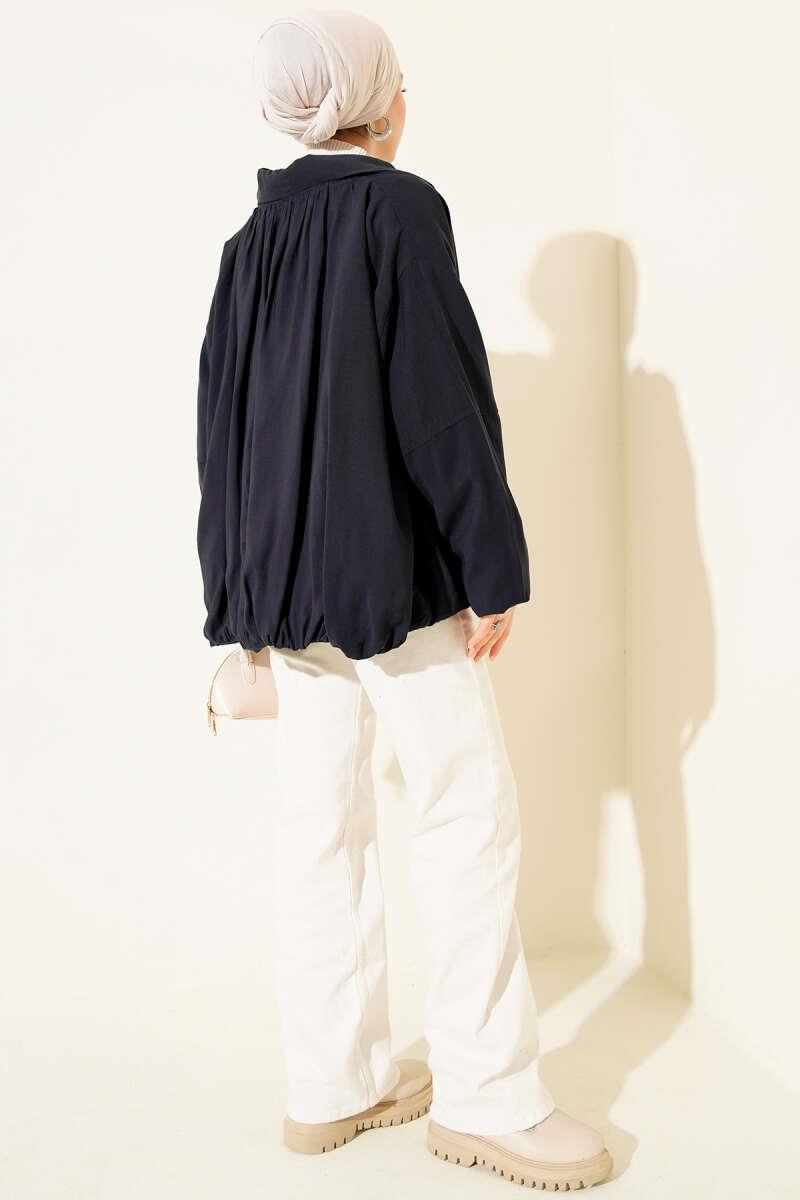 Oversize Fermuarlı Mont Lacivert (0823-1220-697415)