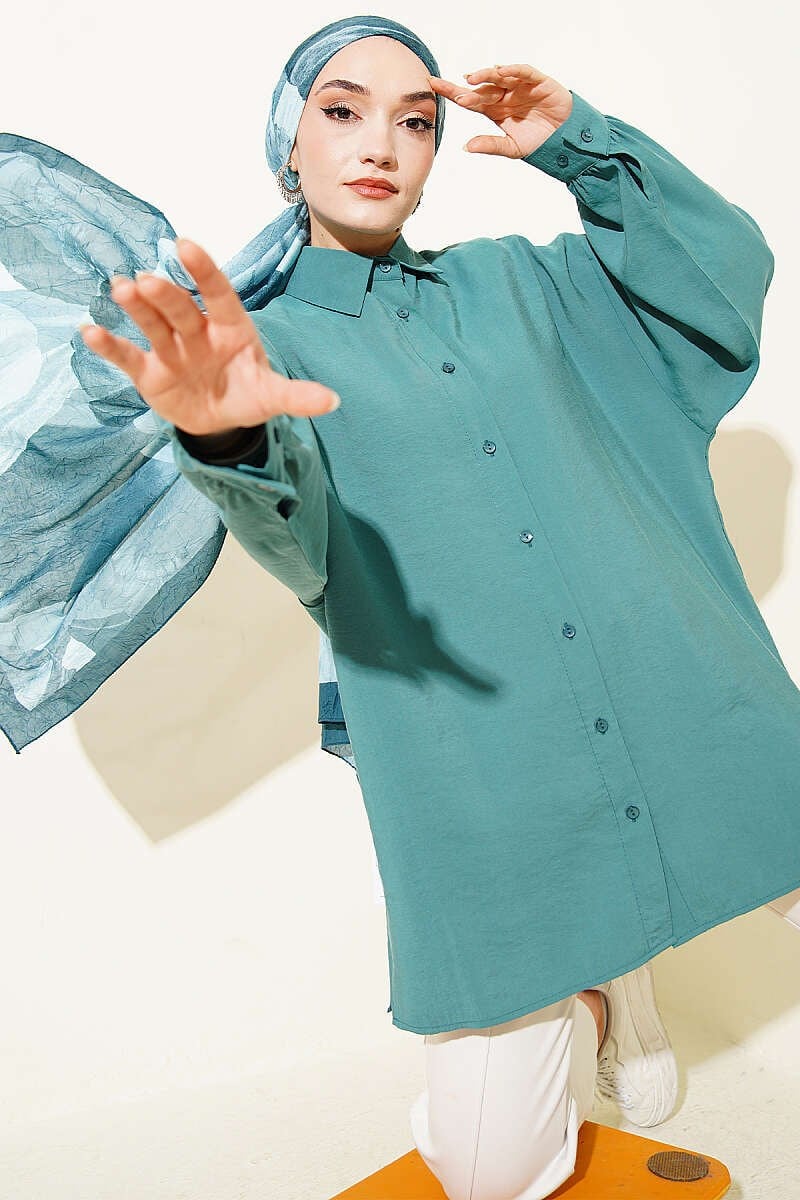 Oversize Tensel Gömlek Petrol (0863-250260-756109)