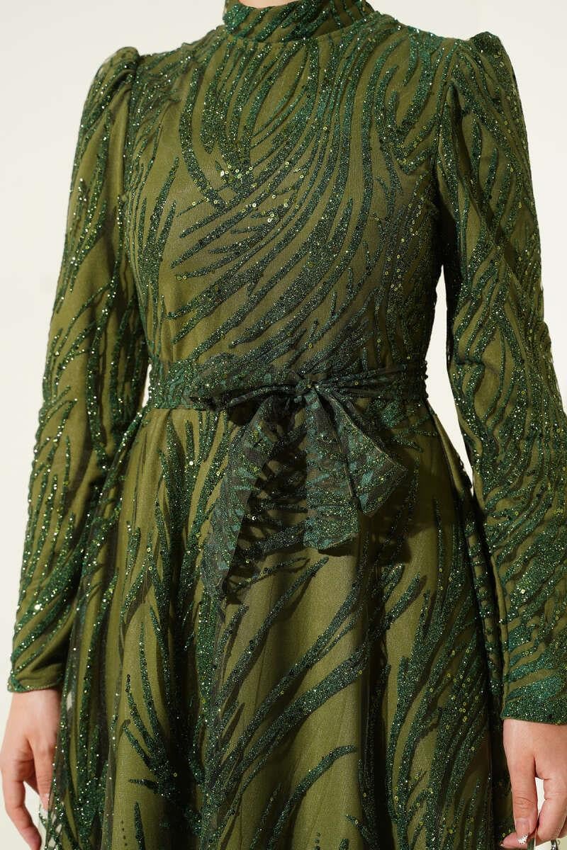 Pullu Simli Abiye Elbise Haki (8163-4450-689450)