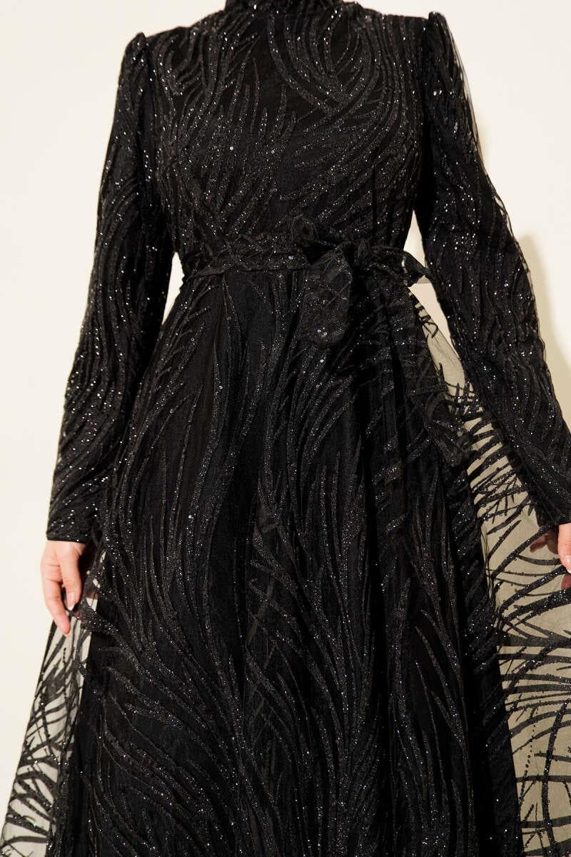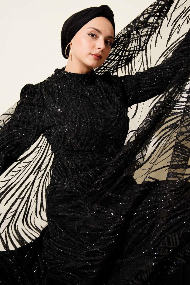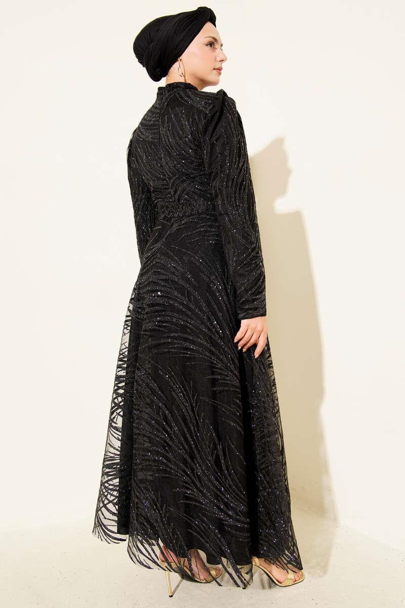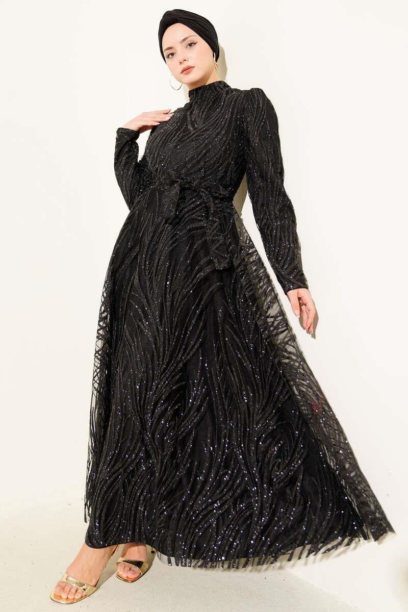 Pullu Simli Abiye Elbise Siyah (8163-4450-689458)