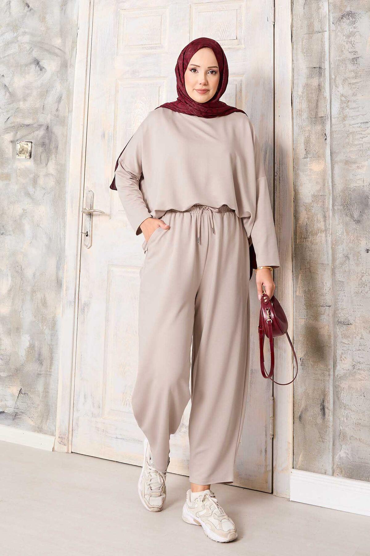 Salaş Kesim Şalvar Pantolonlu Takım Bej (125M00621055R06STD)