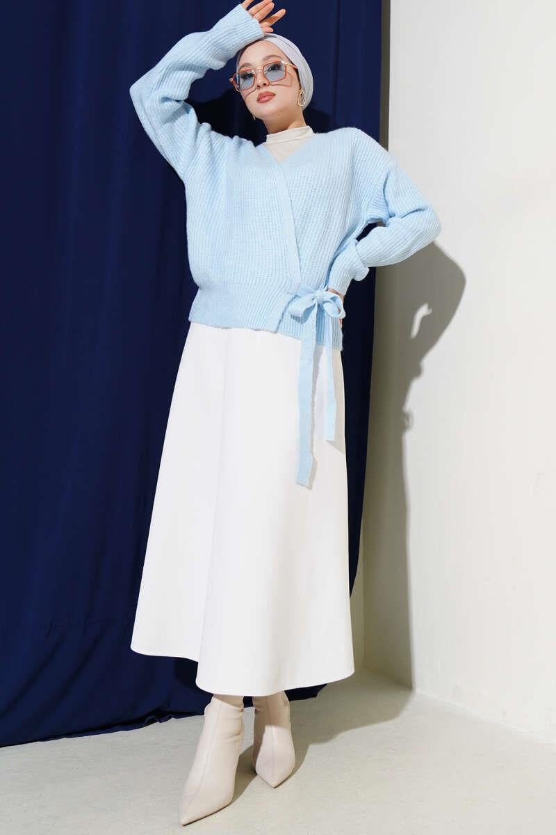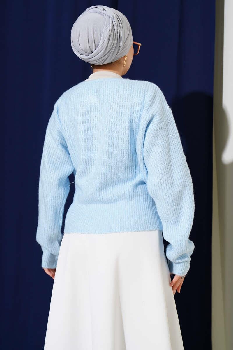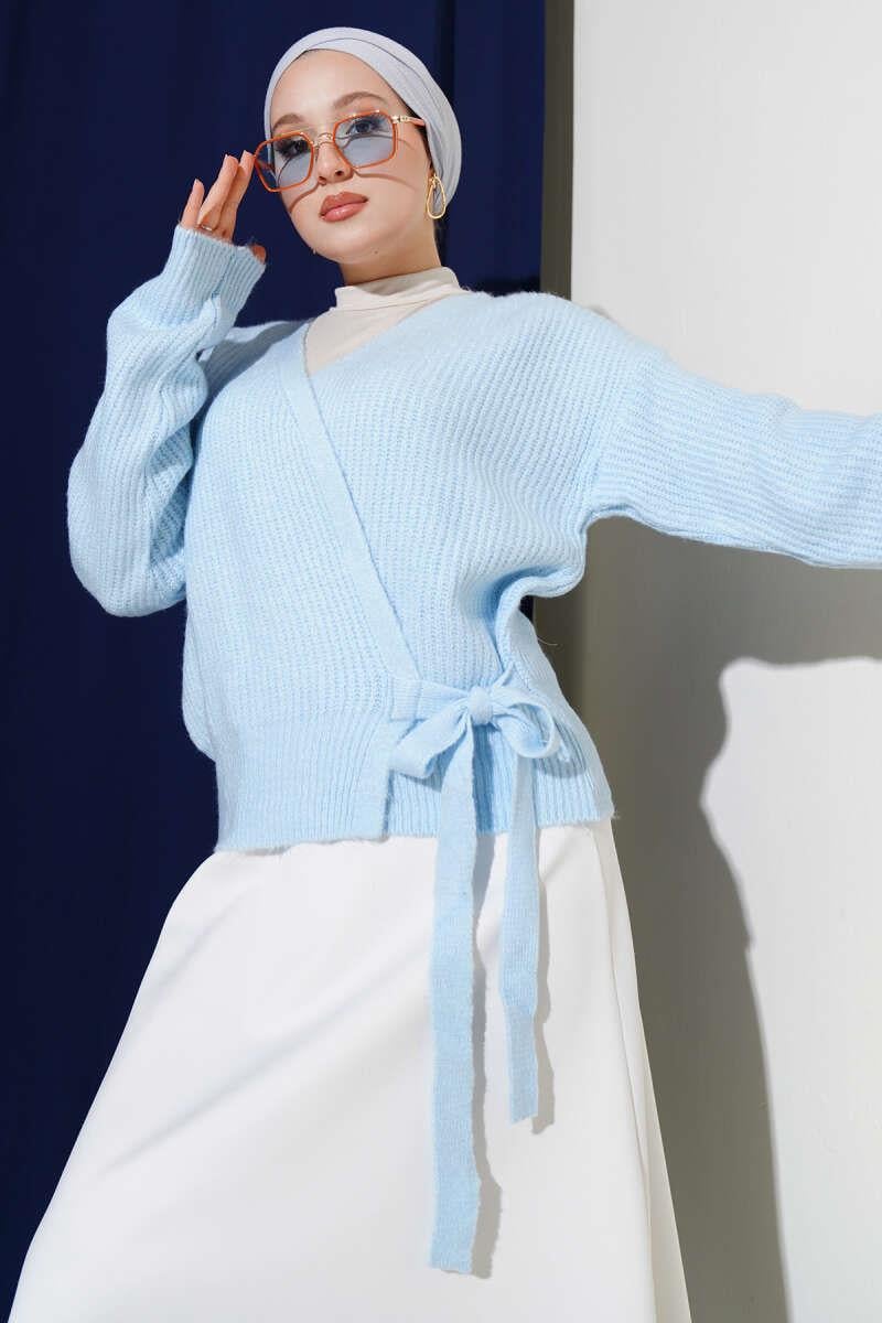 Selanik Örgü Bağlamalı Triko Hırka Mavi (0853-1104-672967)