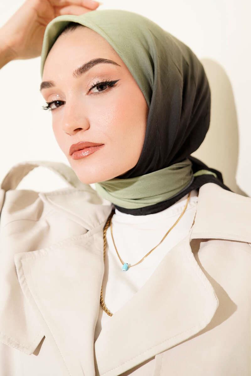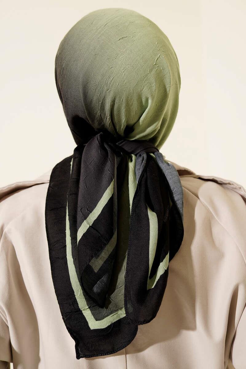 Şeritli Bambu Kraş Eşarp Siyah Yeşil (8093-1038-674662)