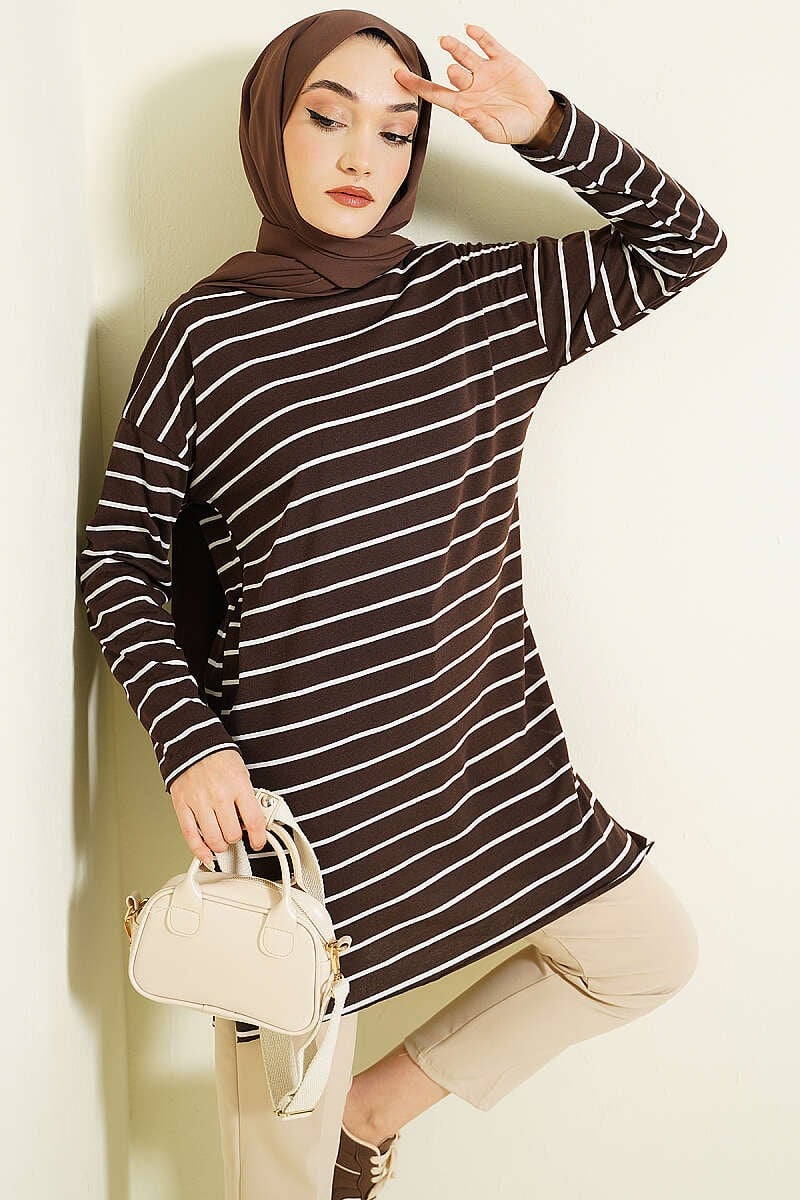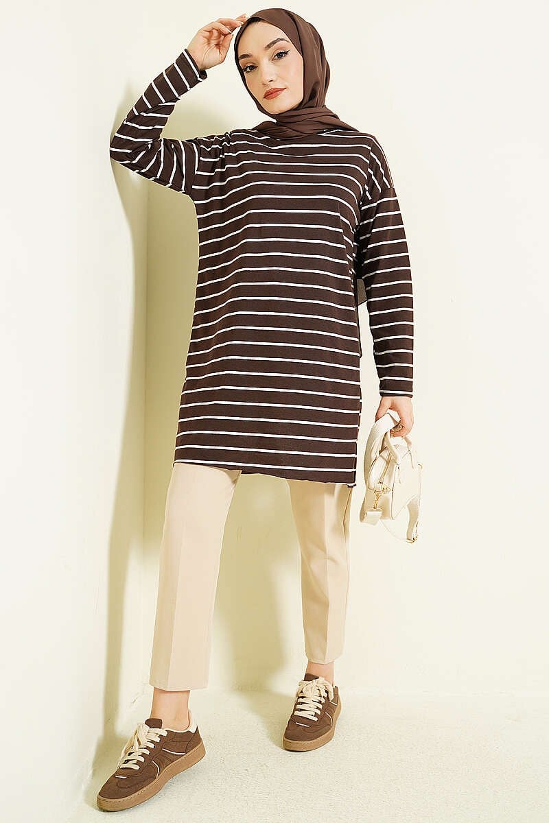 Şeritli Tunik Kahve (0997-810-403257)