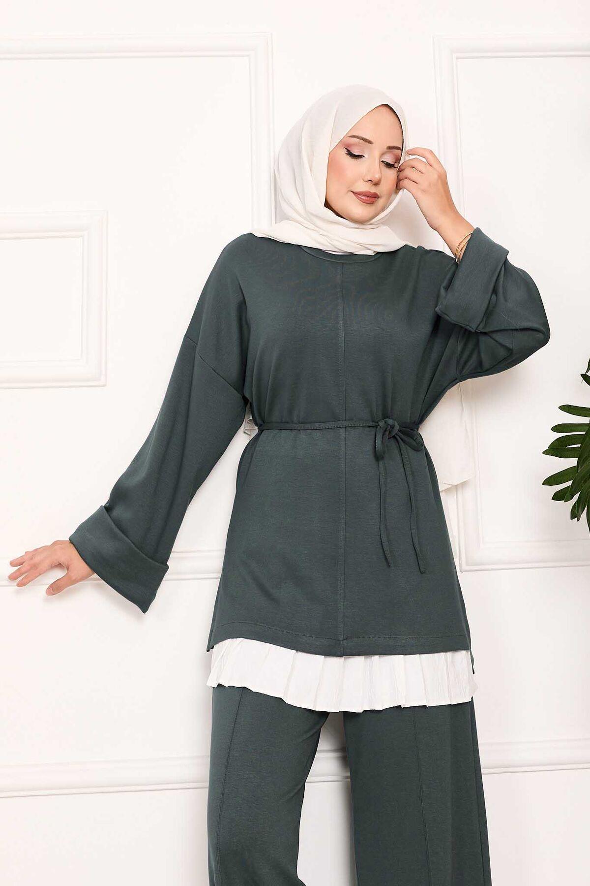 • Ürün mevsimliktir. Yeni sezon kolu katlama detaylı ,seyyar kuşaklı ve pantolon beli lastiklidir. Tuniğimizin önü kısa arkası uzundur.(içlik dahil değildir.)