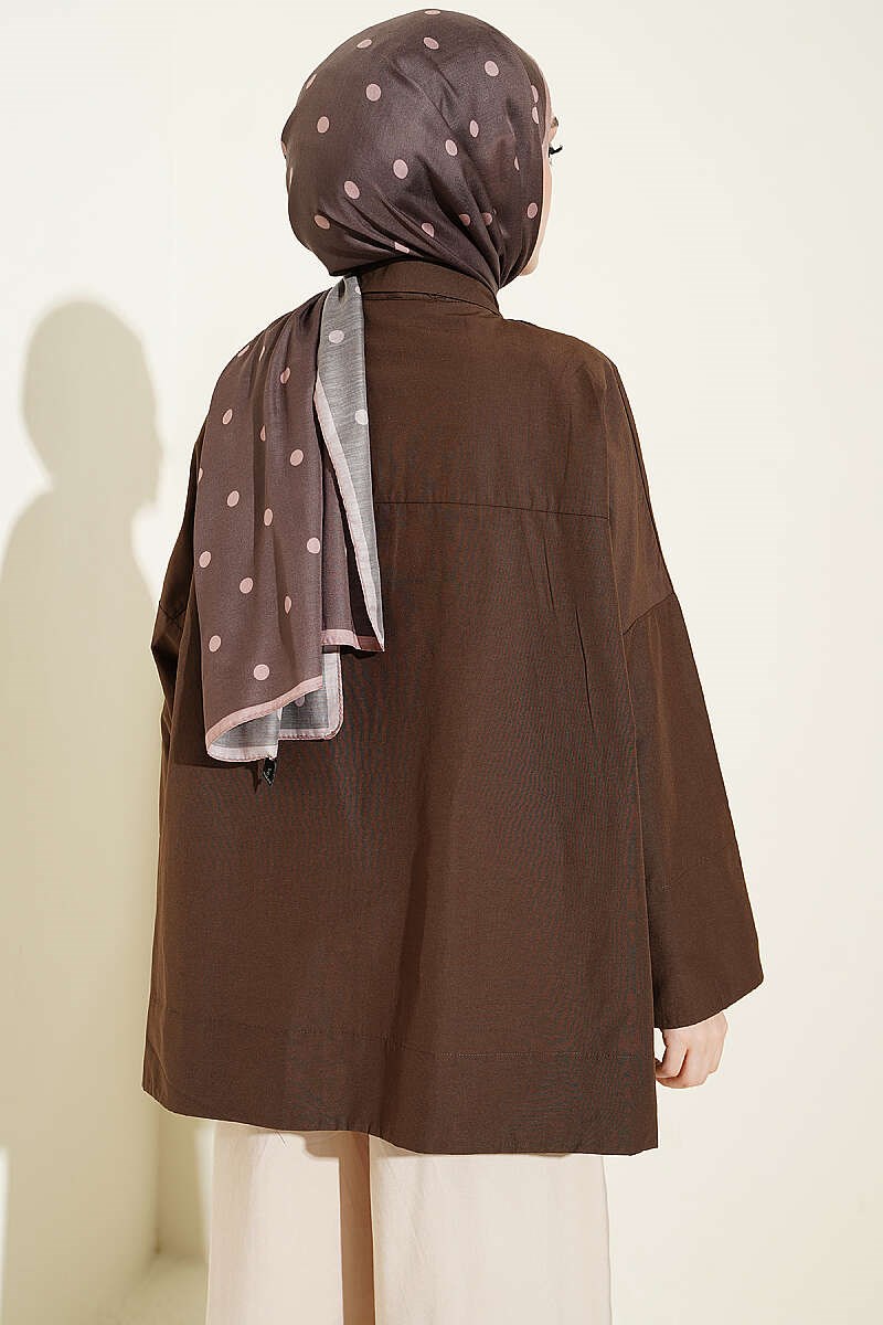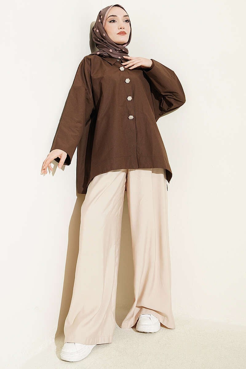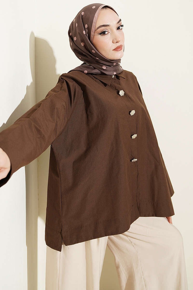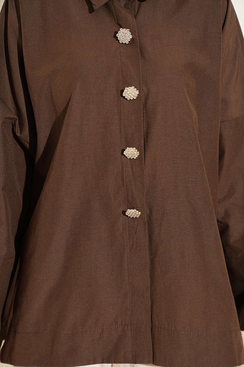 Taş Düğmeli Oversize Gömlek Kahve (0537-4660-746985)