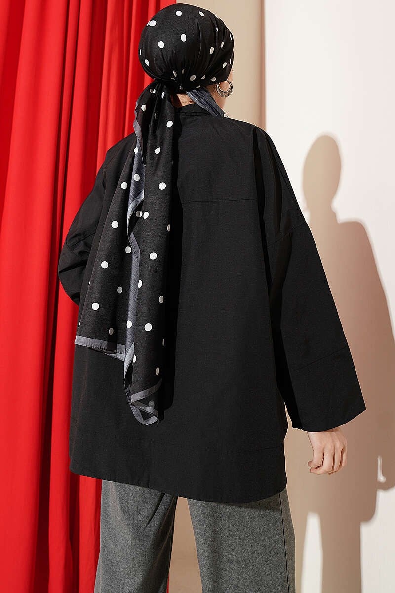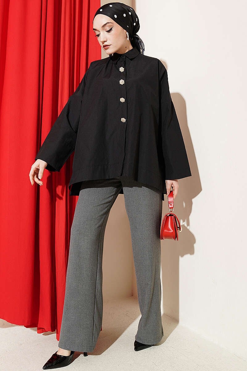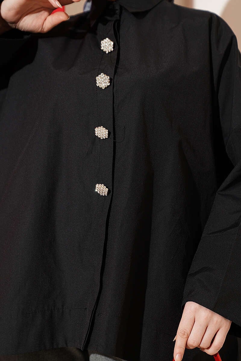 Taş Düğmeli Oversize Gömlek Siyah (0537-4660-746991)