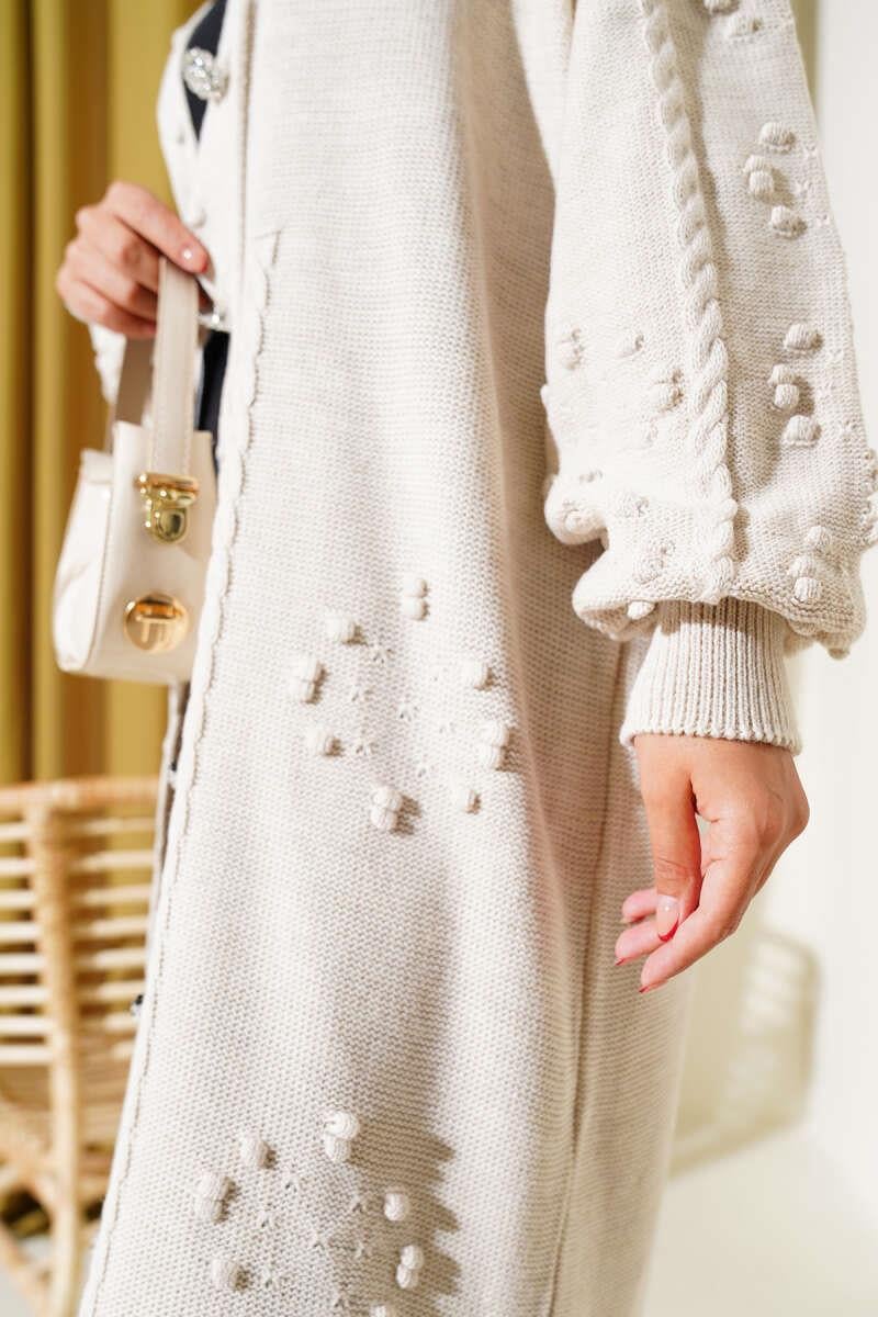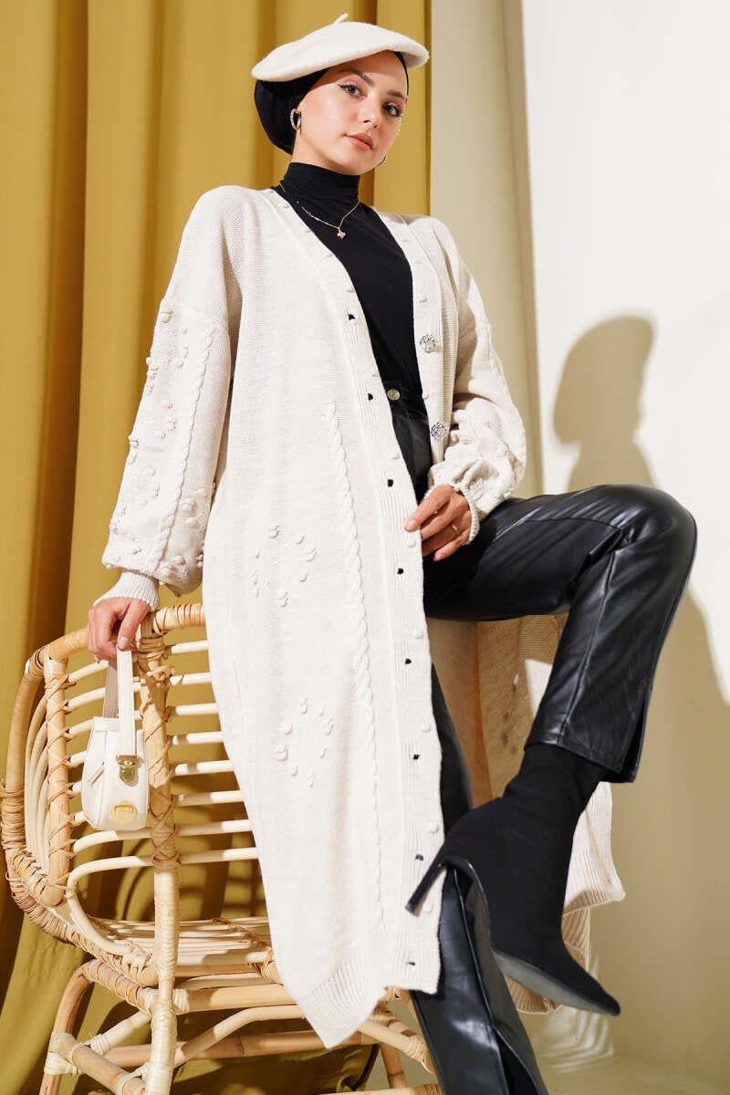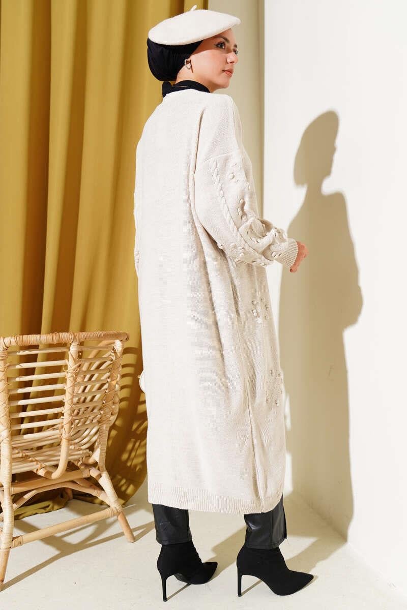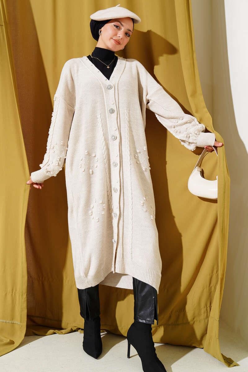 Taşlı Düğmeli Triko Hırka Bej (0875-4098-675786)