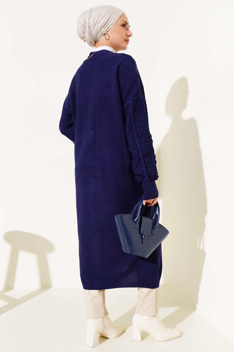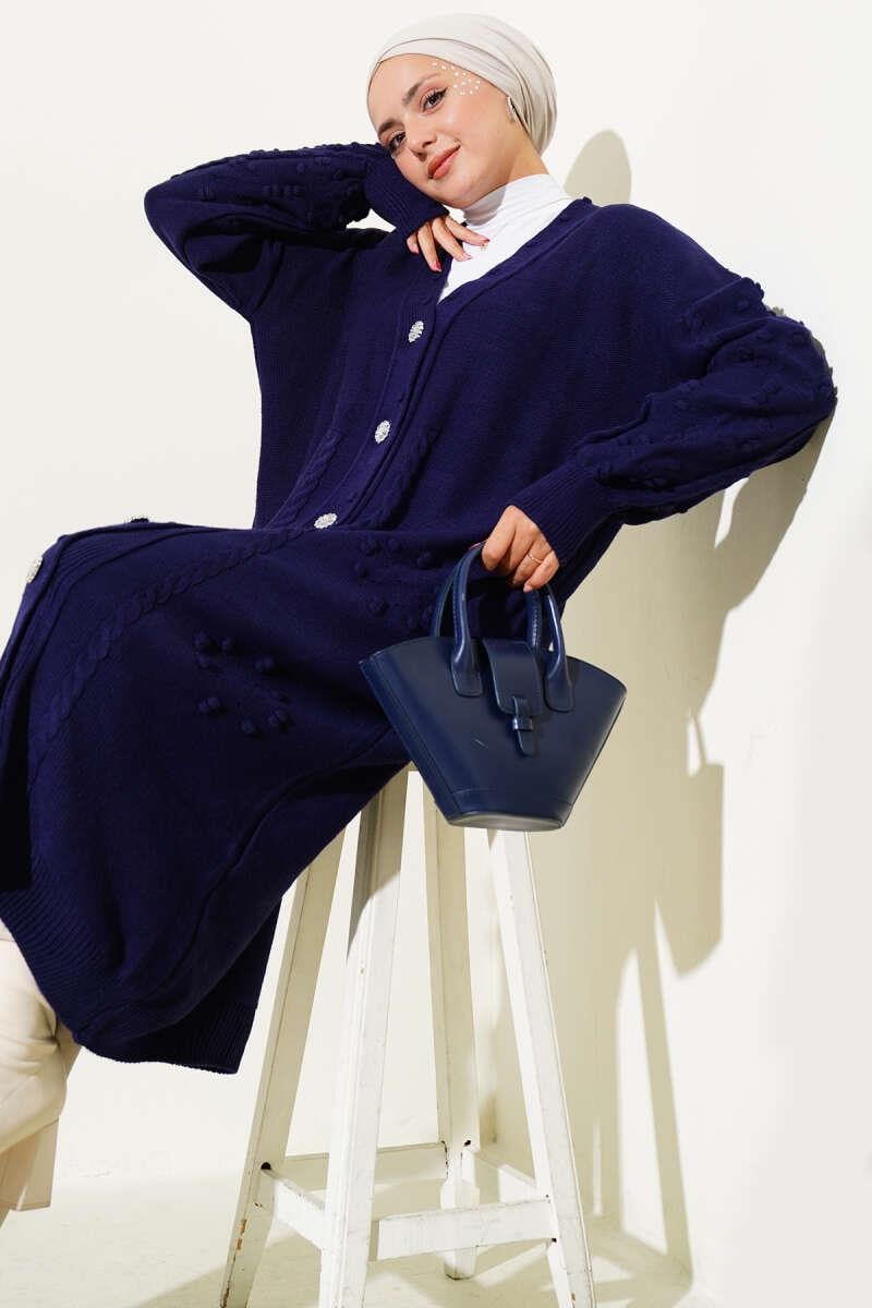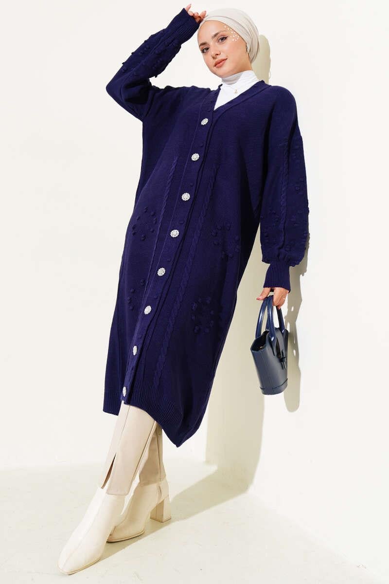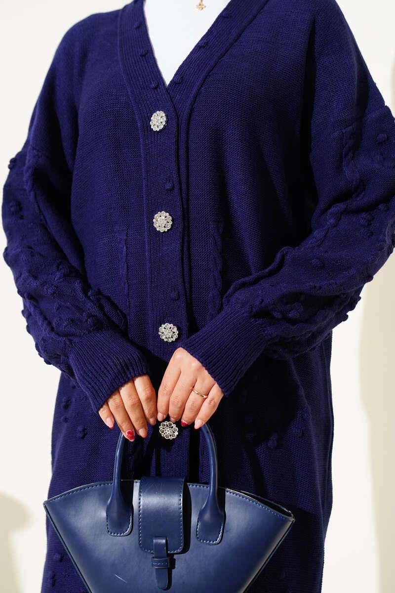 Taşlı Düğmeli Triko Hırka Lacivert (0875-4098-675791)