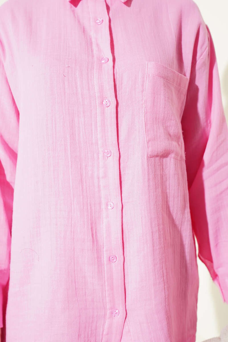 Tek Cepli Salaş Müslin Gömlek Pembe (0674-854-735495)