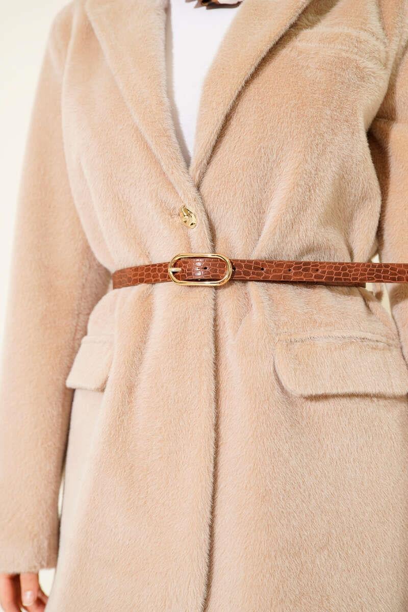 Tek Düğmeli Kemerli Sakallı Ceket Bej (0999-6467-678296)